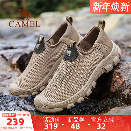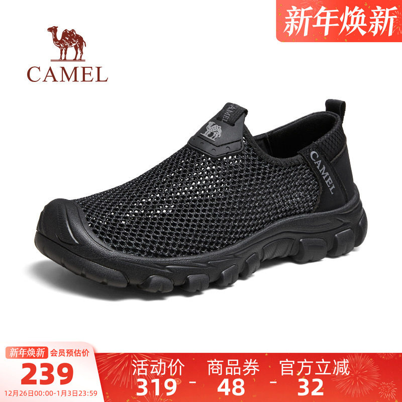 骆驼男鞋2025夏季新款透气爸爸网面鞋一脚蹬防滑户外运动休闲鞋男