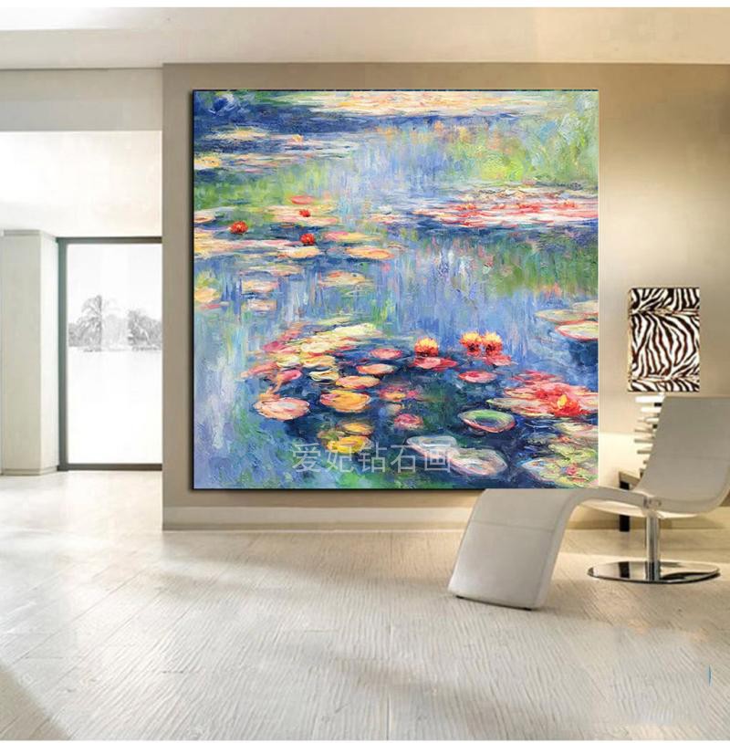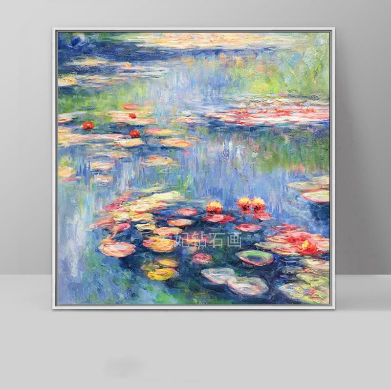 世界名画DIY方钻满钻钻石画餐厅莫奈睡莲荷花粘镶贴钻印花十字绣