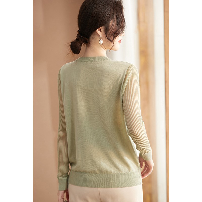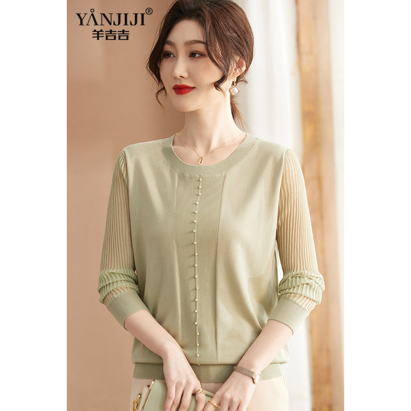 中年妈妈春装针织小衫时尚洋气套装中老年人女装春秋薄款沙袖上衣