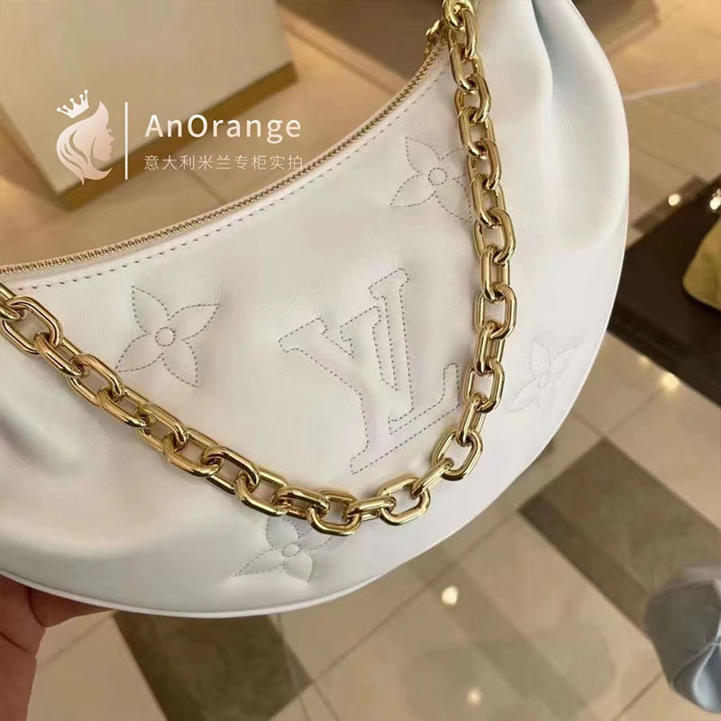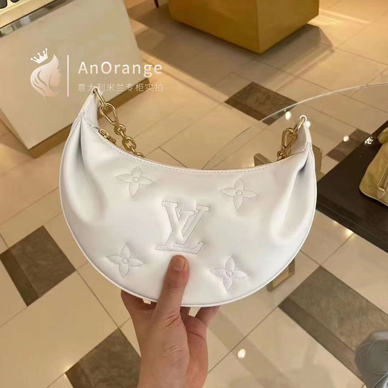 Louis Vuitton/路易威登LV女包白色牛皮压纹月亮包腋下挎包M59959