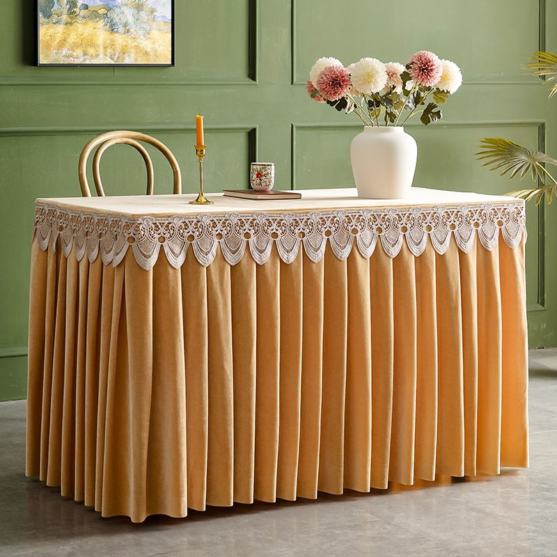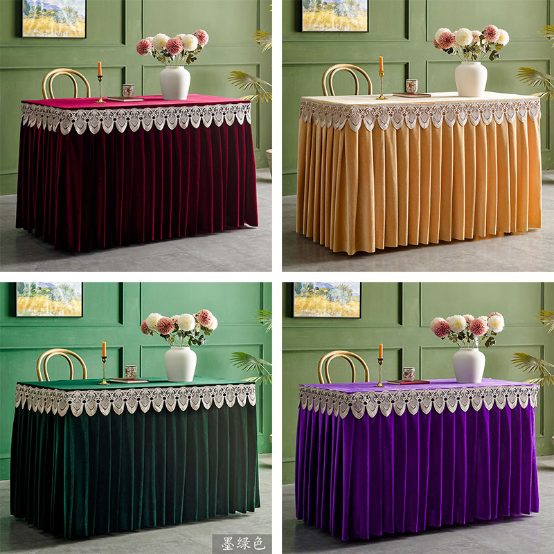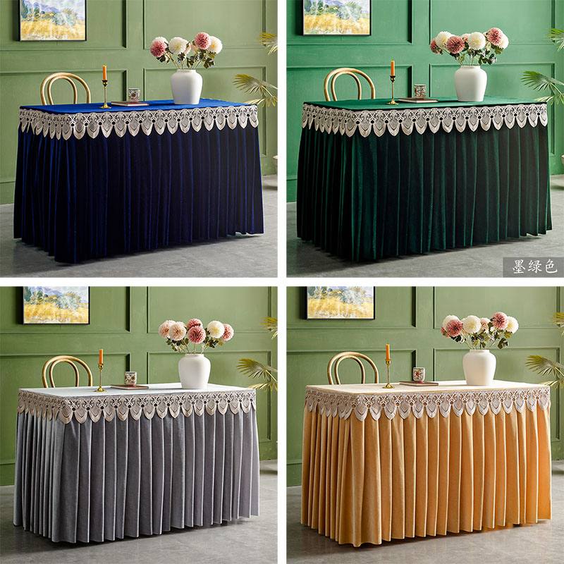 定制会议金丝绒桌布绒布桌裙长方形商务展会签到办公桌布艺桌套