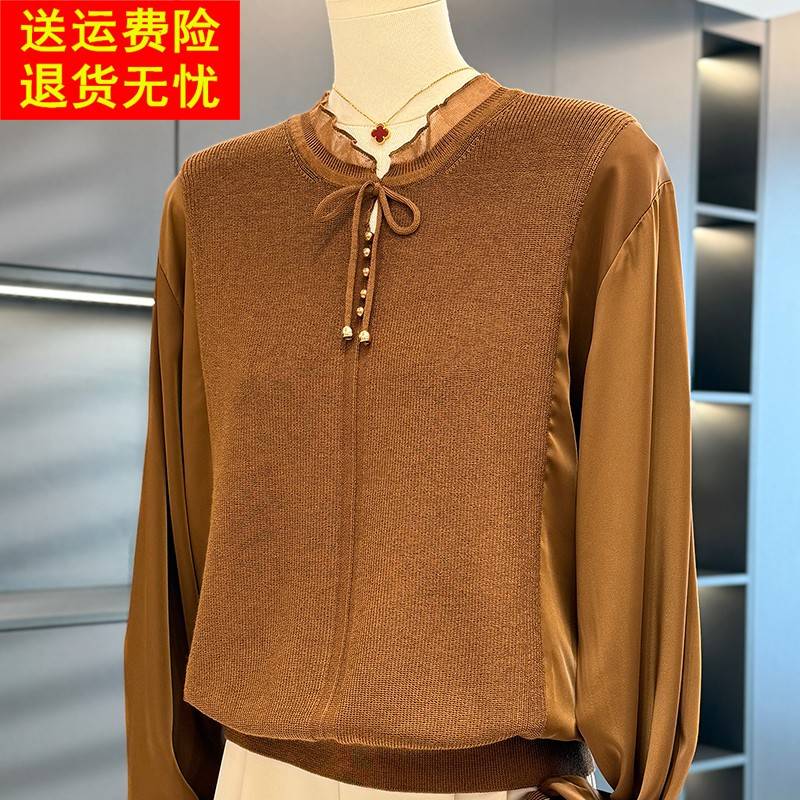 时尚气质妈妈装雪纺拼接针织衫女春装新款上衣减龄洋气中老年打底