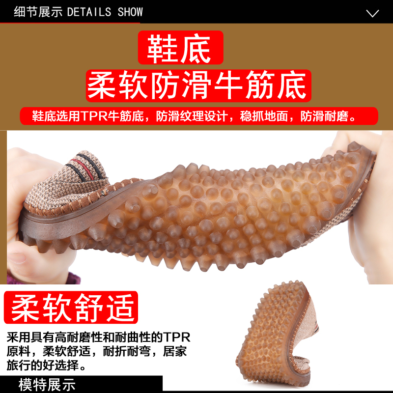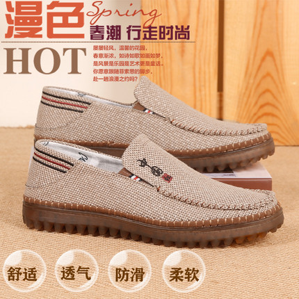 老北京布鞋中老年春秋男士休闲透气爸爸时尚牛筋底防滑平底老人鞋