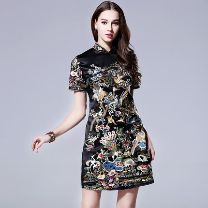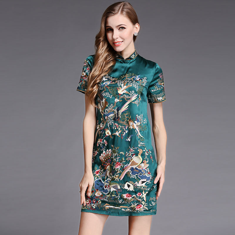 安娜滕旗袍连衣裙真丝刺绣中国风