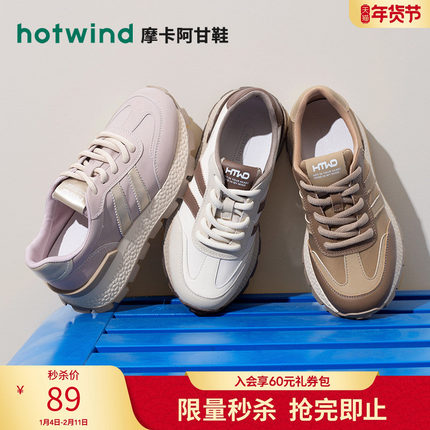 热风秋季新款女士时尚潮流运动休闲鞋厚底舒适百搭慢跑鞋女