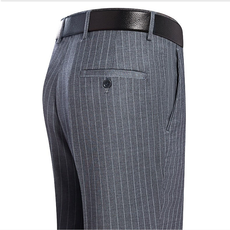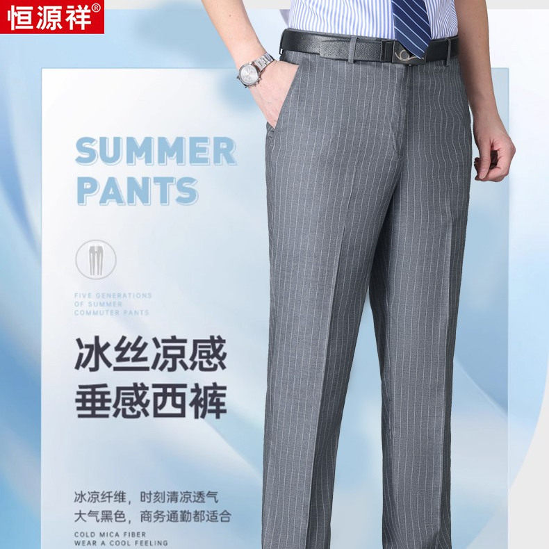 恒源祥桑蚕丝西裤男夏季薄款商务直筒中年宽松高腰竖条免烫西装裤