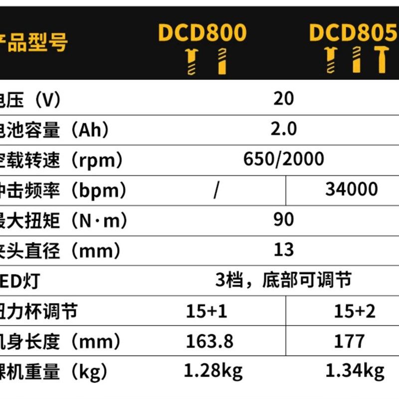DEWALT得伟20V无刷锂电紧凑型90牛米手电钻791升级款DCD800手电钻