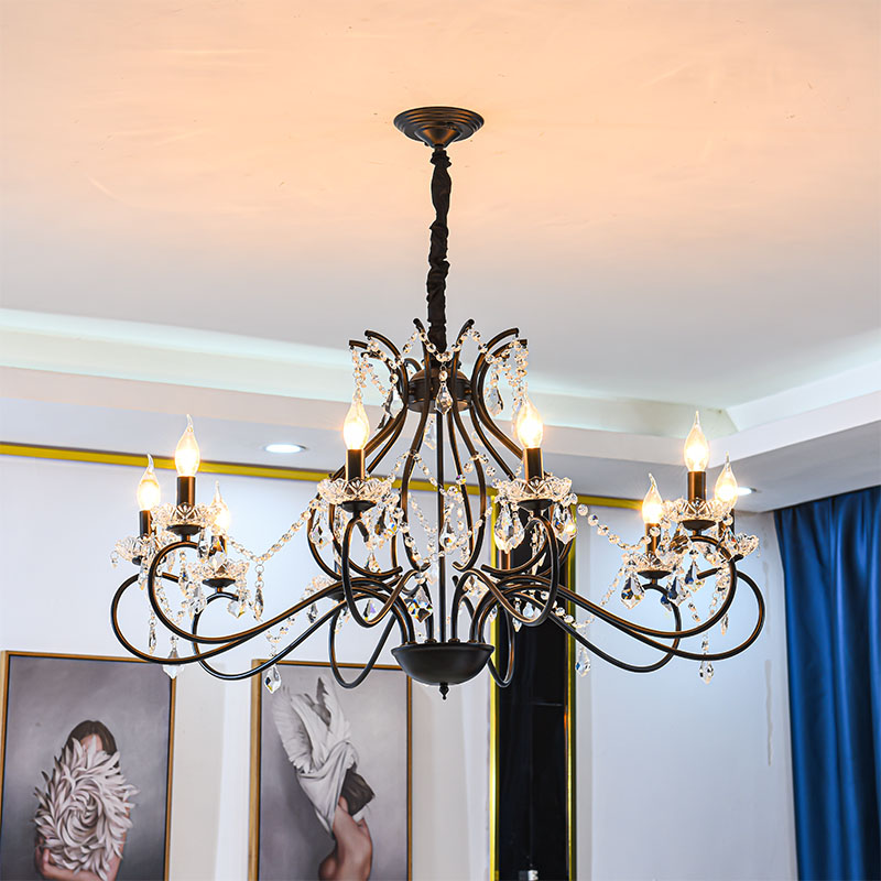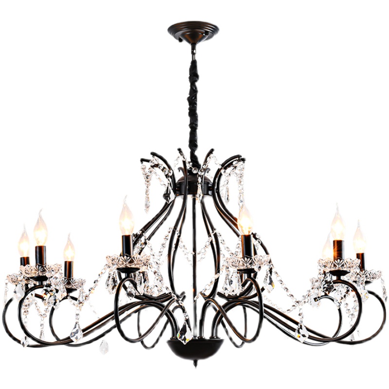 美式水晶吊灯客厅卧室饭厅灯简约轻奢婚庆服装店个性黑色铁艺灯具