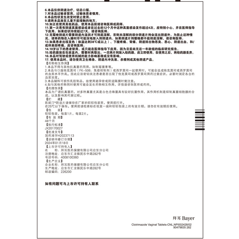 凯妮汀克霉唑阴道片阴道炎霉菌性妇科炎症正品用药旗舰店拜耳专用