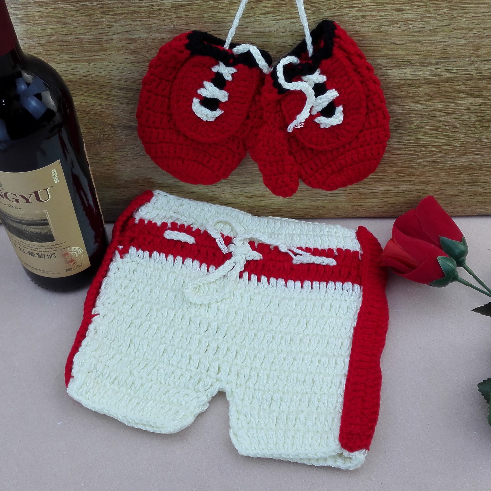 儿童摄影拳击服装 宝宝拍照手工毛线针织服饰 婴儿拳王造型衣服
