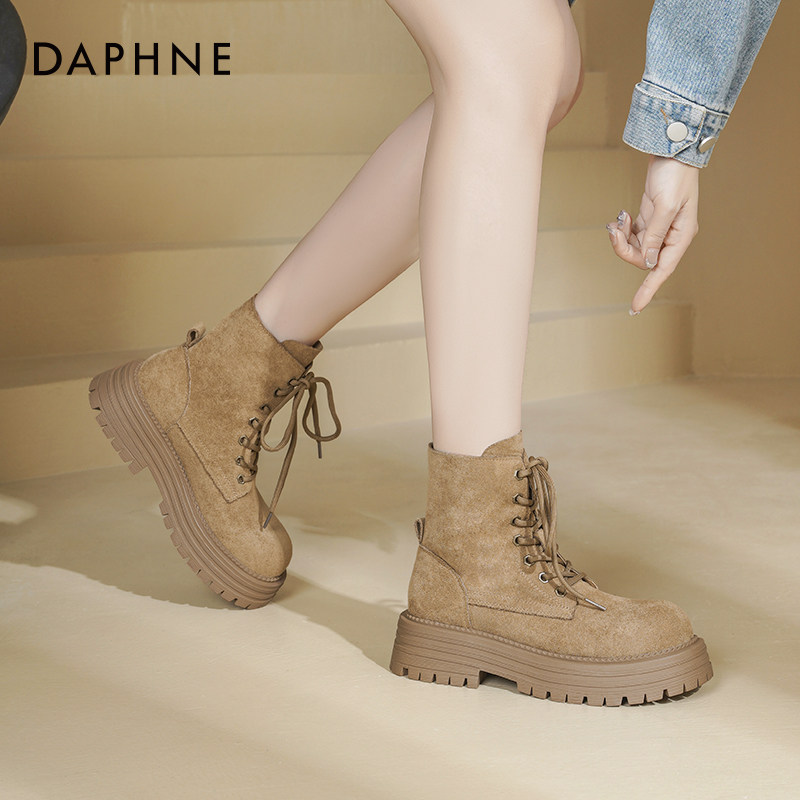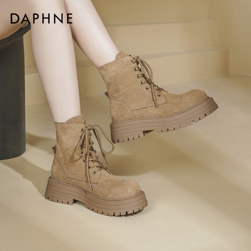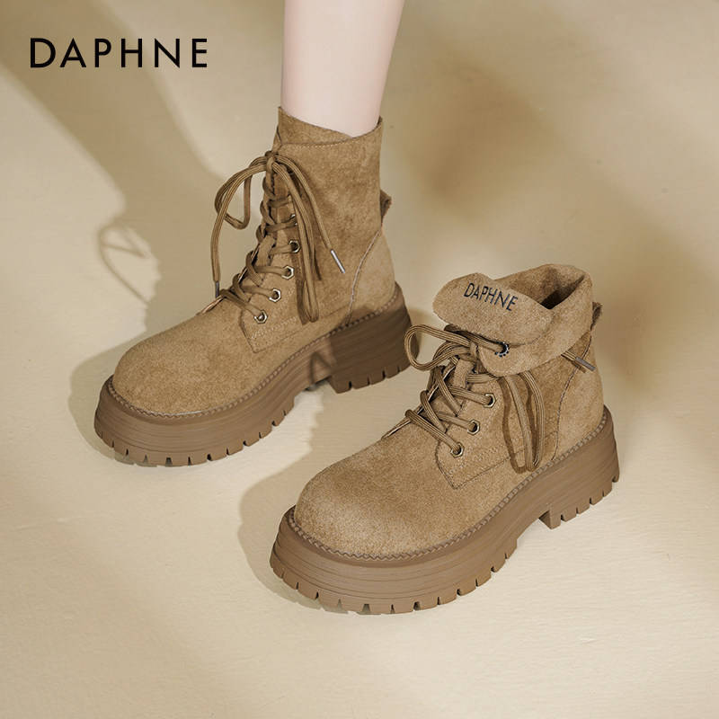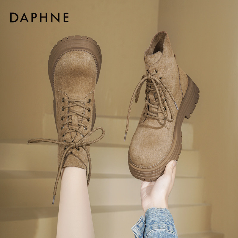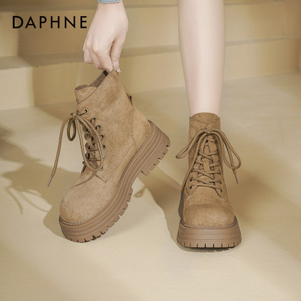 达芙妮厚底马丁靴女款2025新款秋季复古两穿大黄靴棕色绒面短靴子