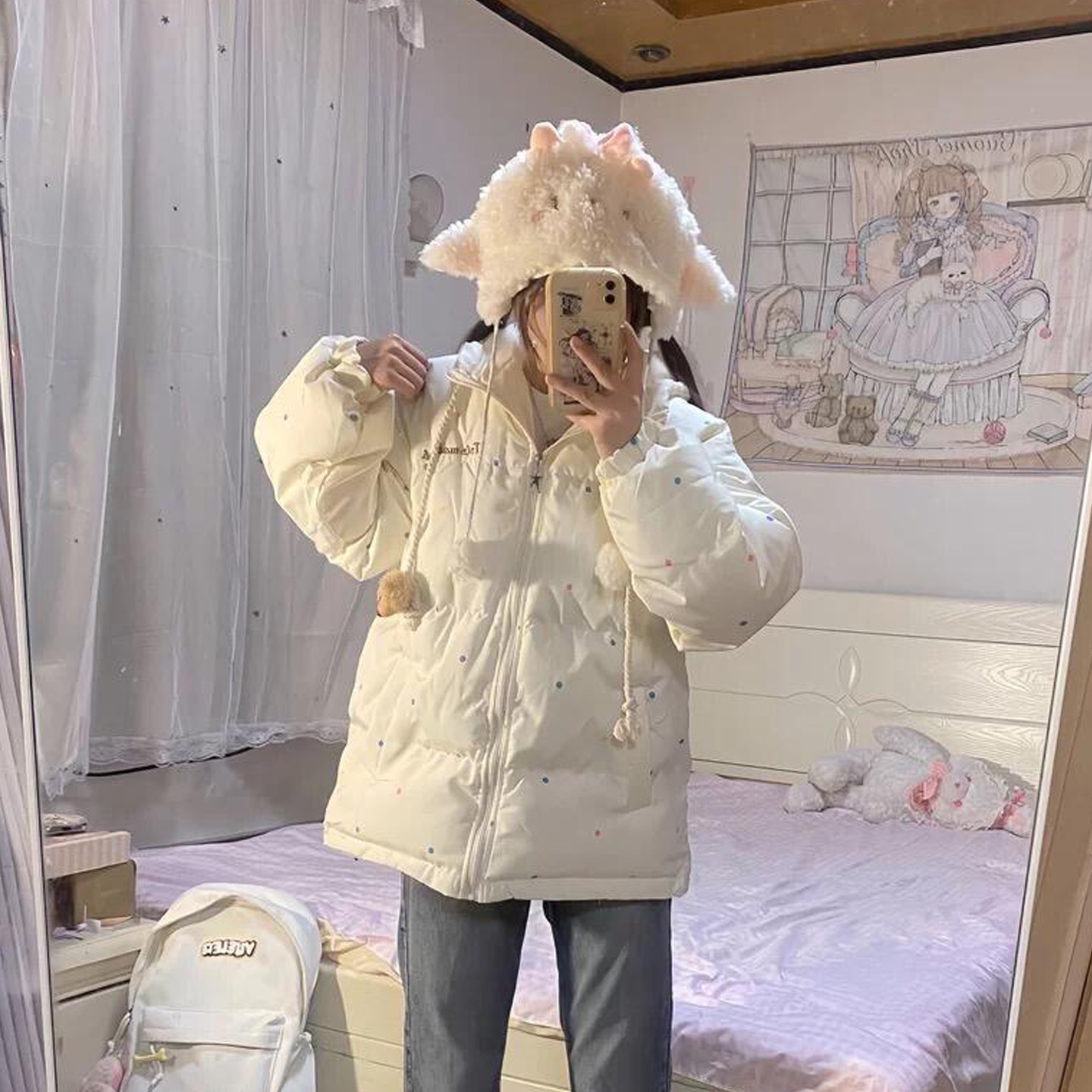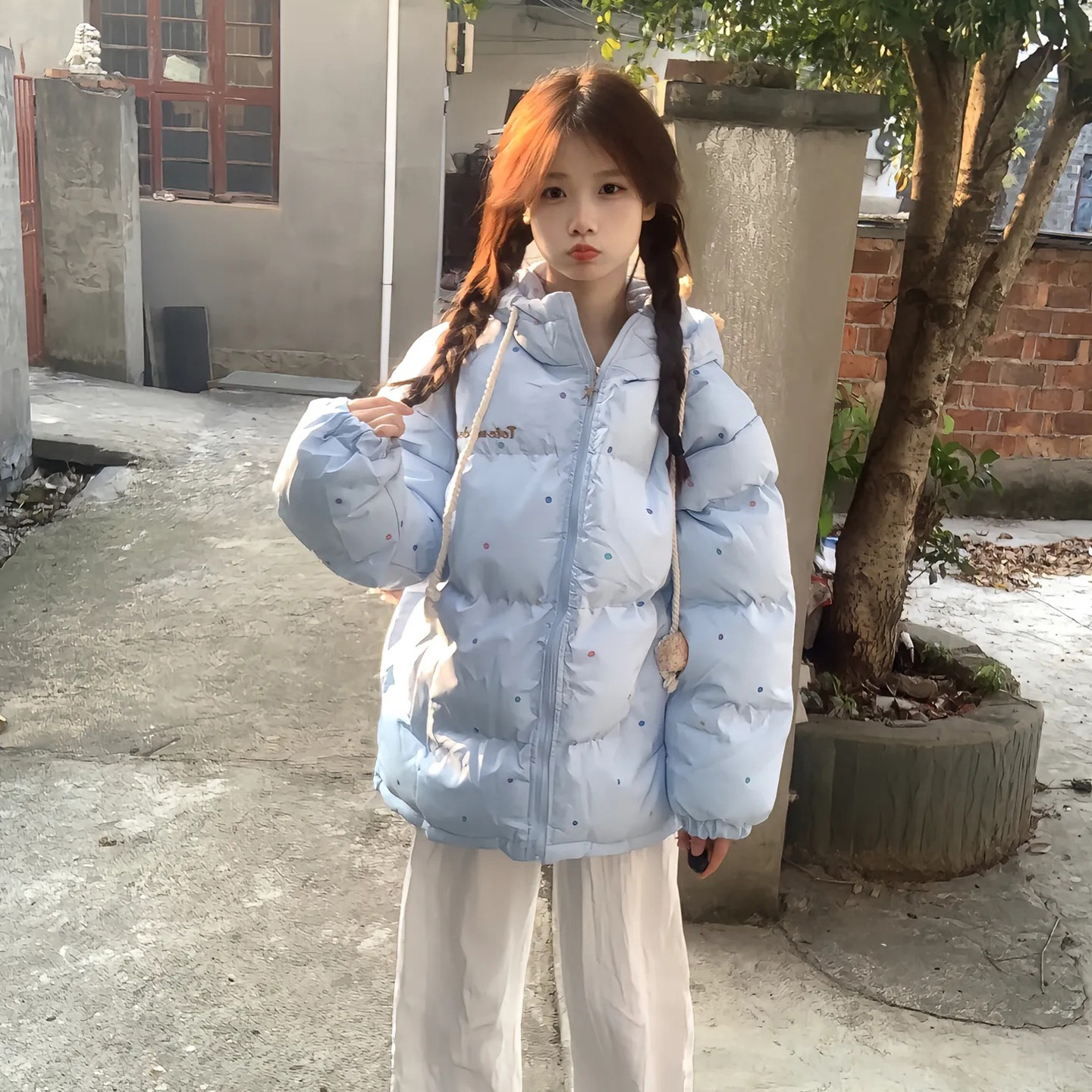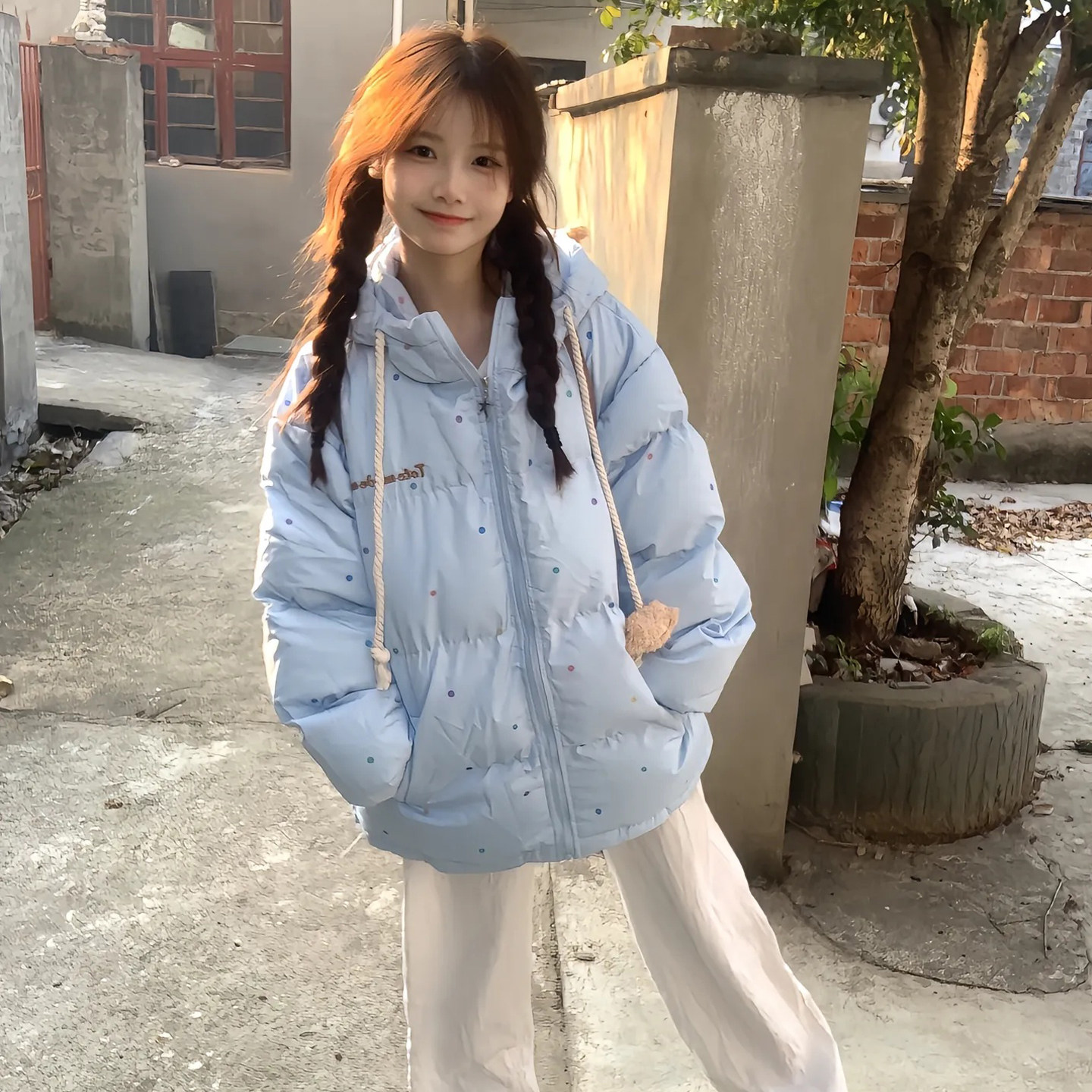 超好看波点学生棉服女小个子外套