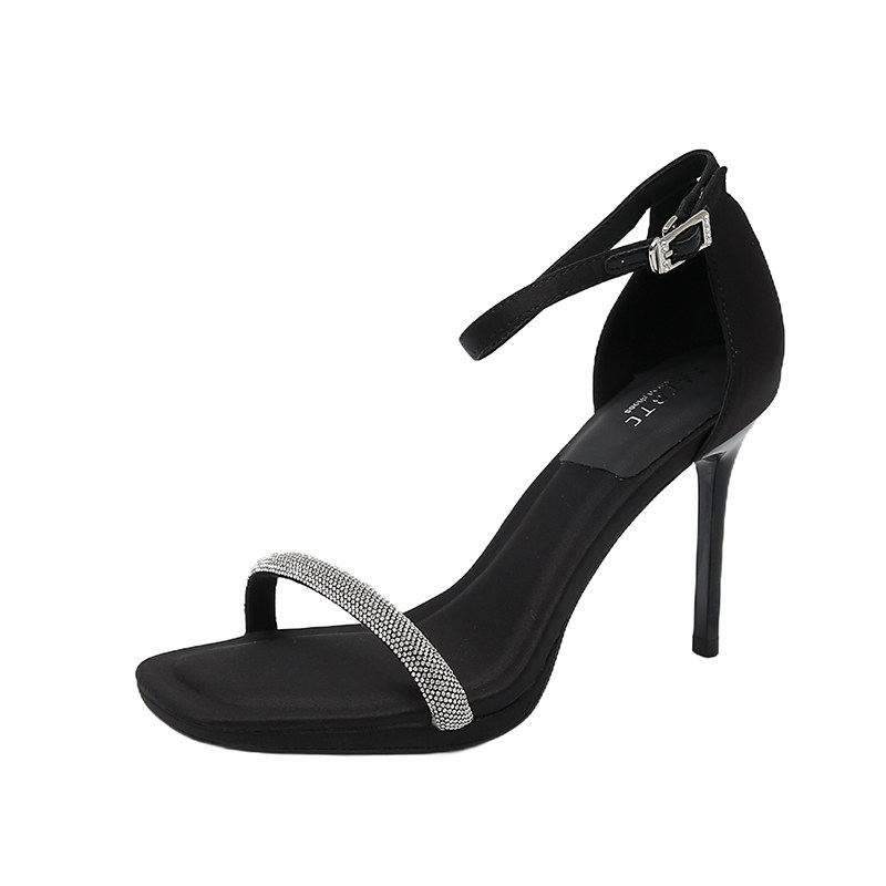 一字带高跟鞋女2025年夏季新款百搭银色性感水钻露趾细跟气质凉鞋