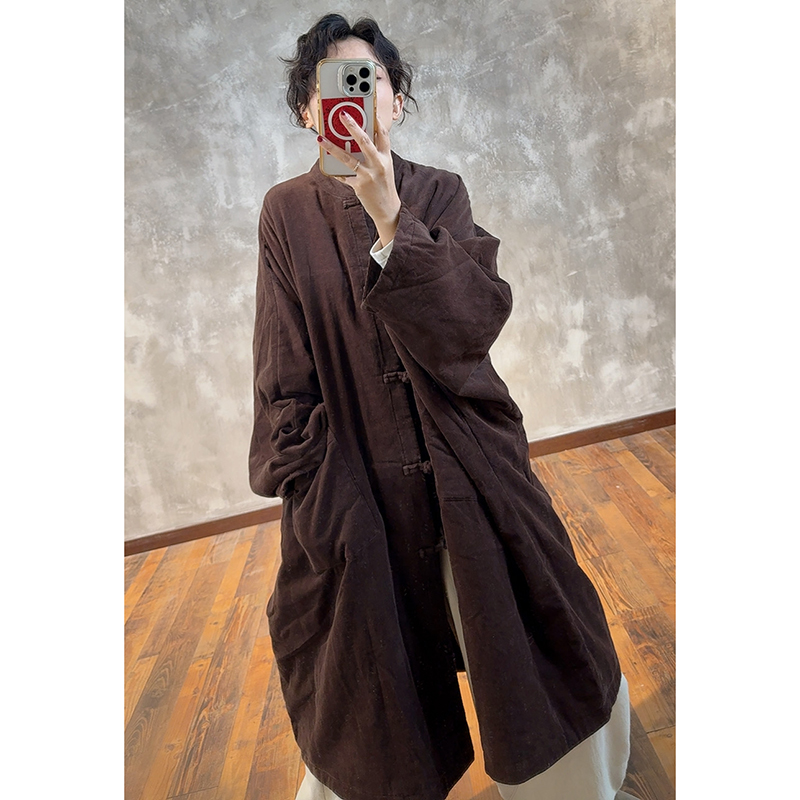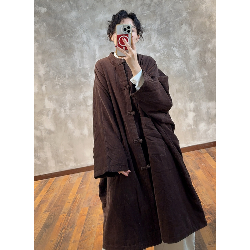 YIMIAN 复古高定做旧禅意慵懒松弛感宽松加棉盘扣大棉袍22065