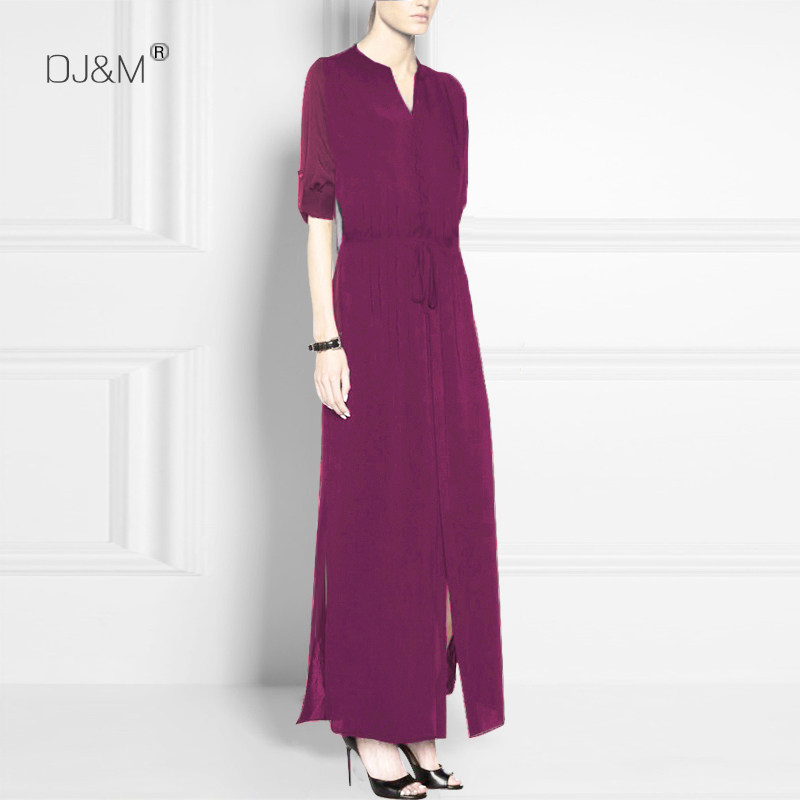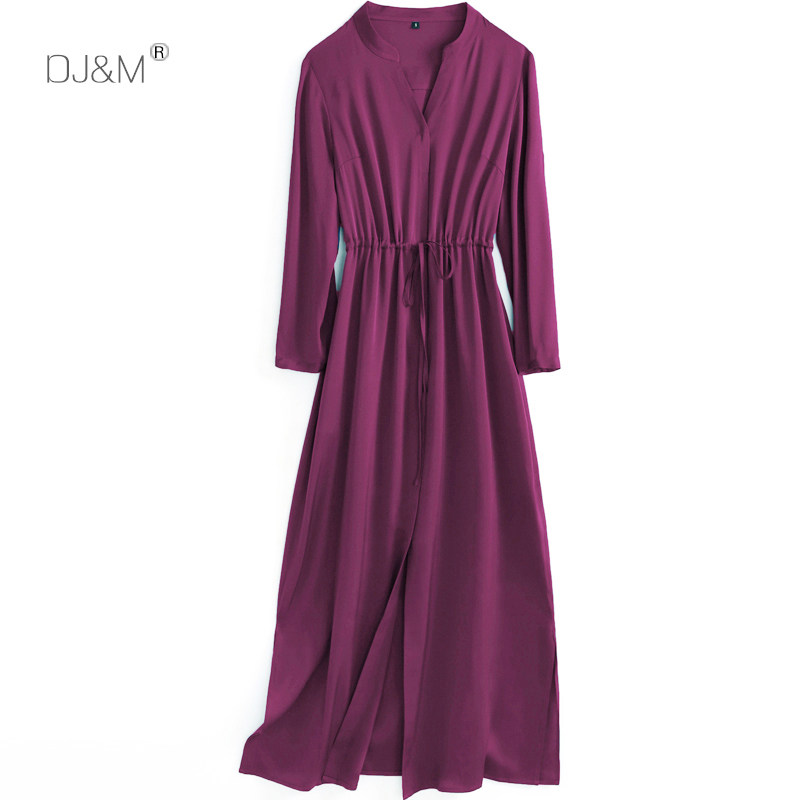 轻奢礼服精致垂感重磅真丝连衣裙女V领长款抽绳开衩2025春夏新款
