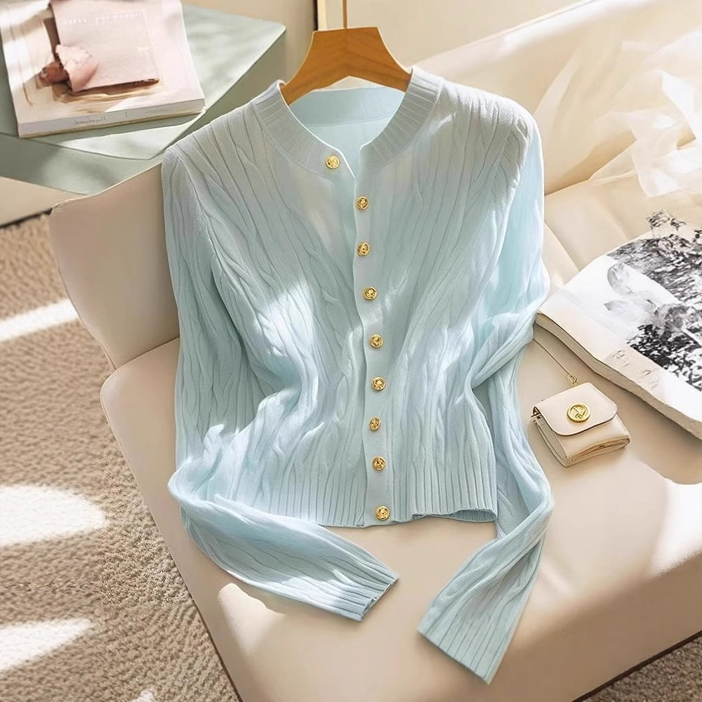 小香风薄荷蓝色麻花针织衫女2025早春新款韩系慵懒毛衣开衫外套