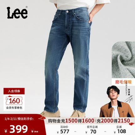 【张凌赫代言】Lee25冬新726标准中腰直筒磨毛中深蓝男牛仔裤保暖
