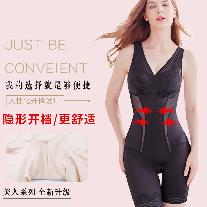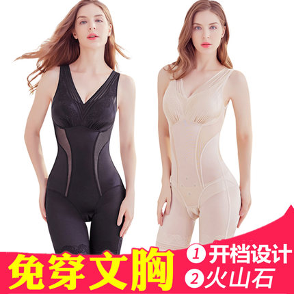 免穿带文胸一体开档塑身衣连体内衣美体连体产后束身衣收腹紧身
