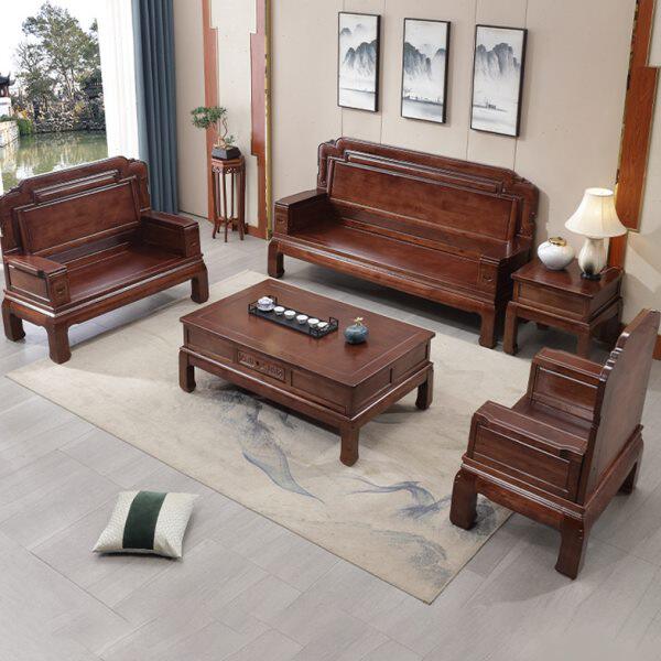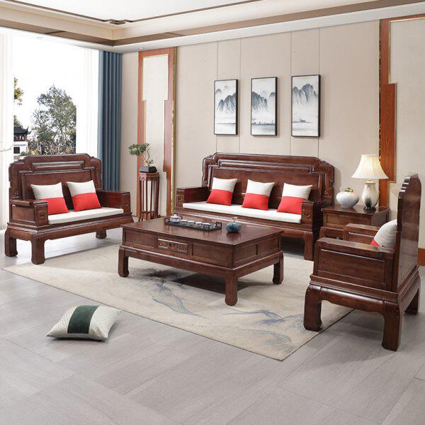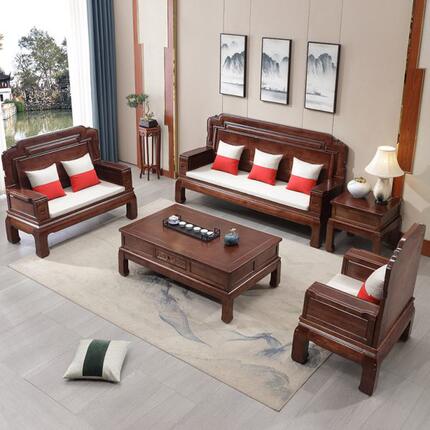 实木沙发冬夏两用仿古新中式实木别墅黑胡桃木雕花客厅家具古典