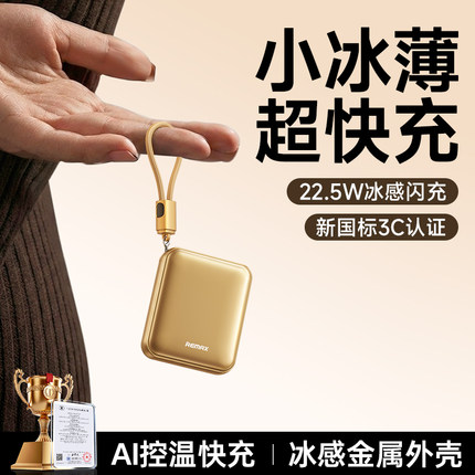 【新国标3C认证】remax睿量2026新款充电宝超薄小巧便携迷你自带线快充大容量10000毫安飞机可携带适用于苹果
