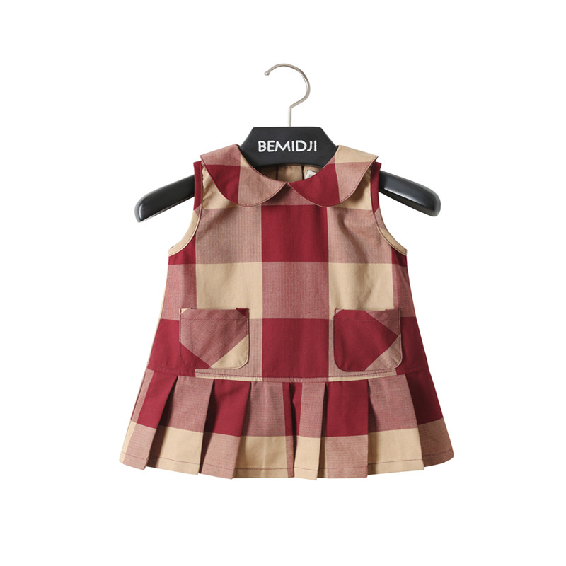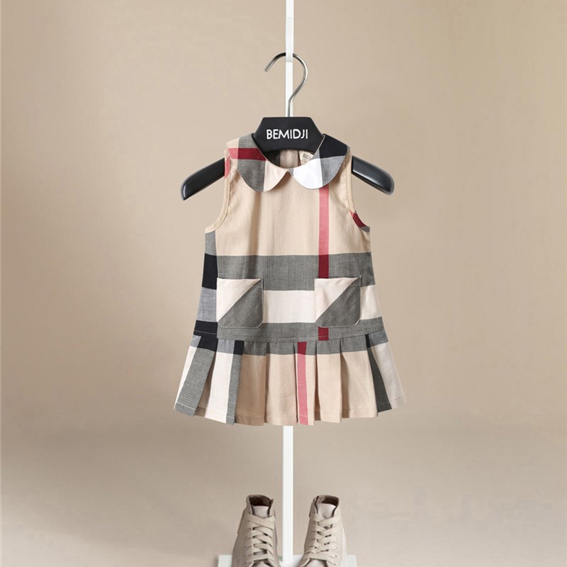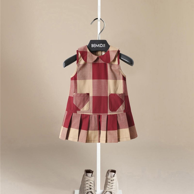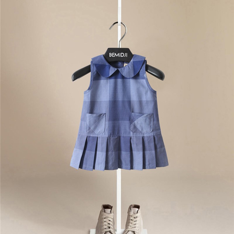 童装女童夏装新款连衣裙儿童夏季无袖背心裙宝宝文艺范气质格子裙