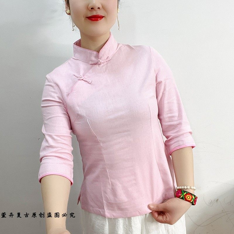 萱卉原创女装2025春季新款复古盘扣民国风茶艺服装女立领唐装上衣