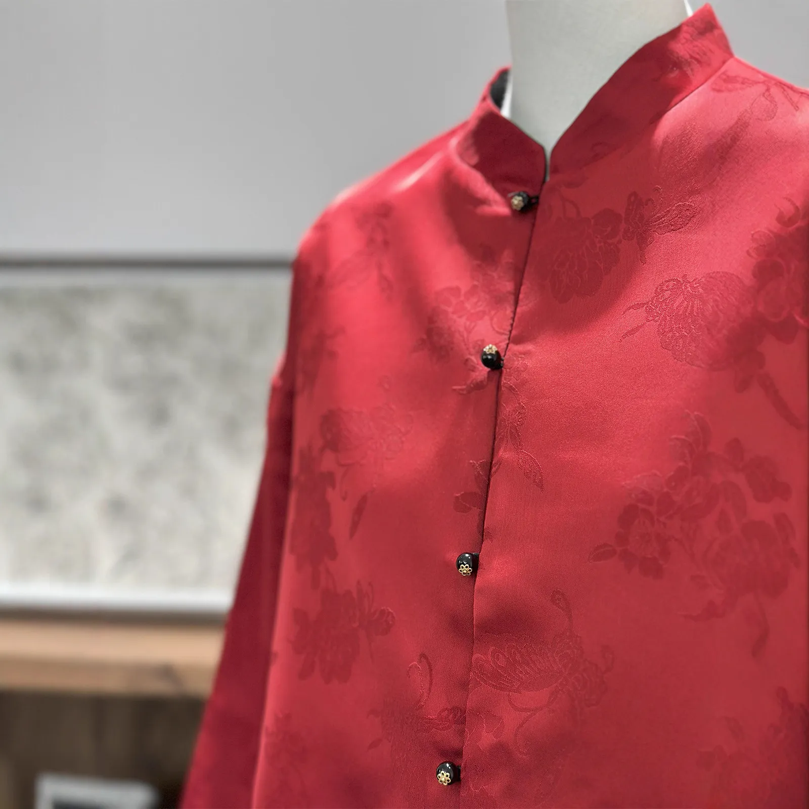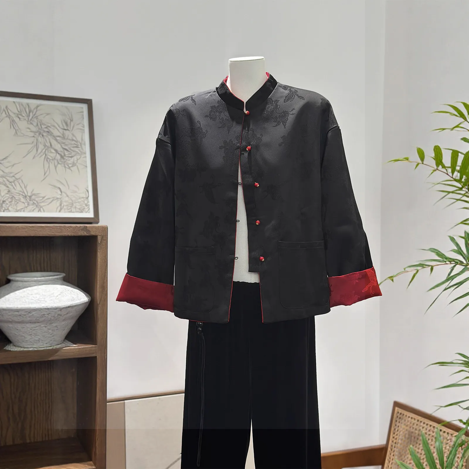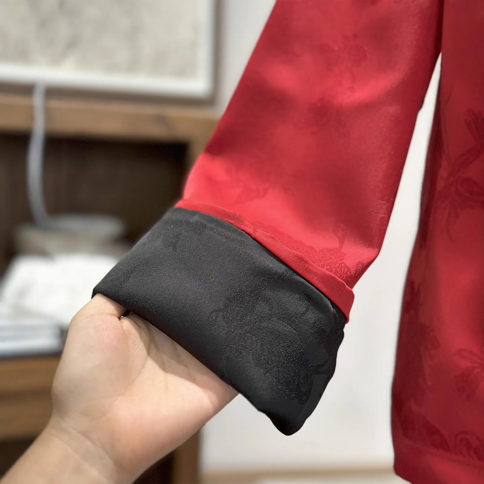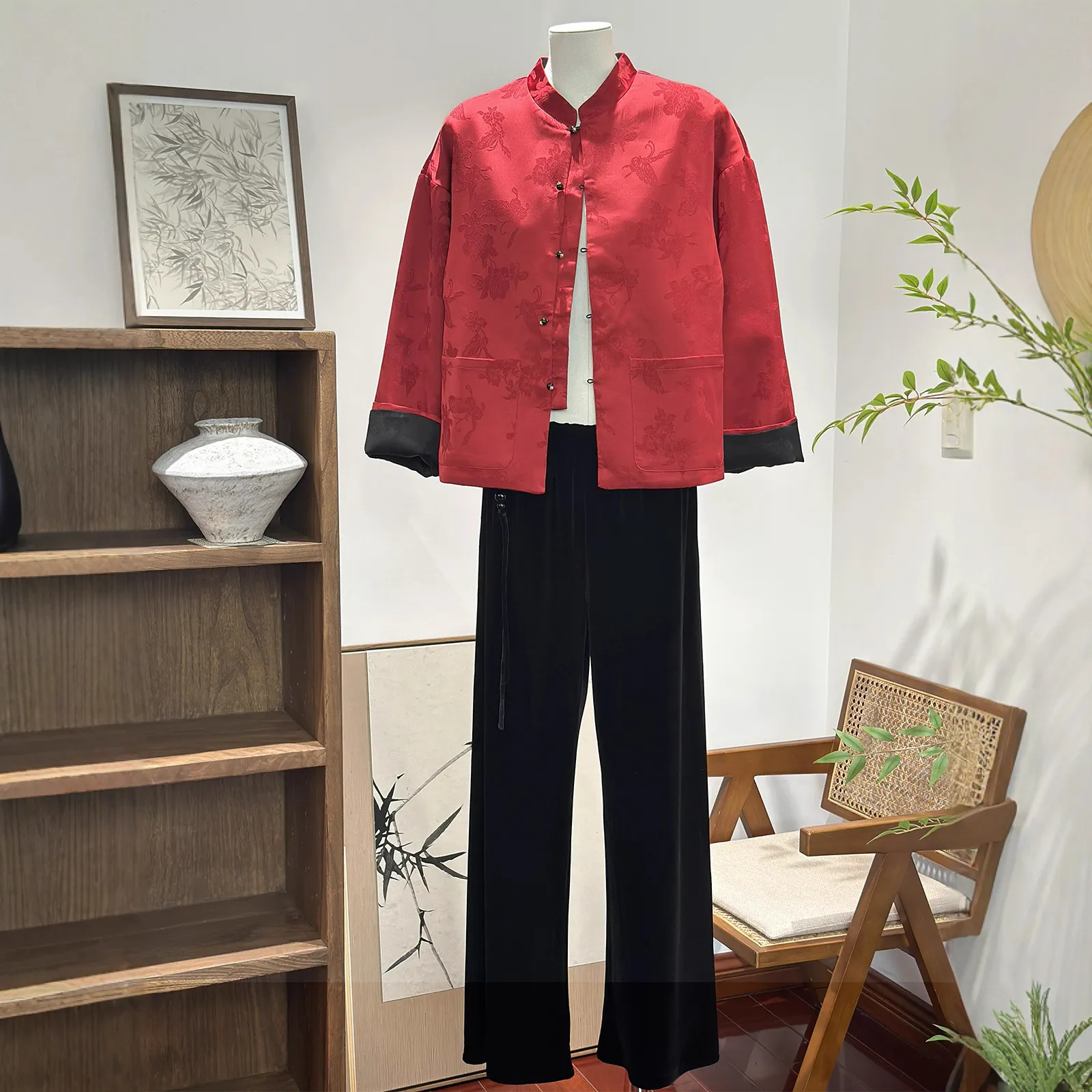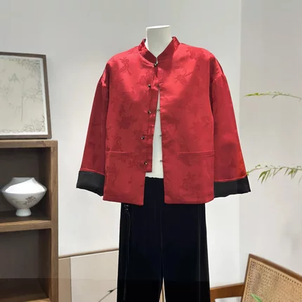 双面穿红色提花缎面春秋新款唐装新中式国风宽松短款外套婚宴女装