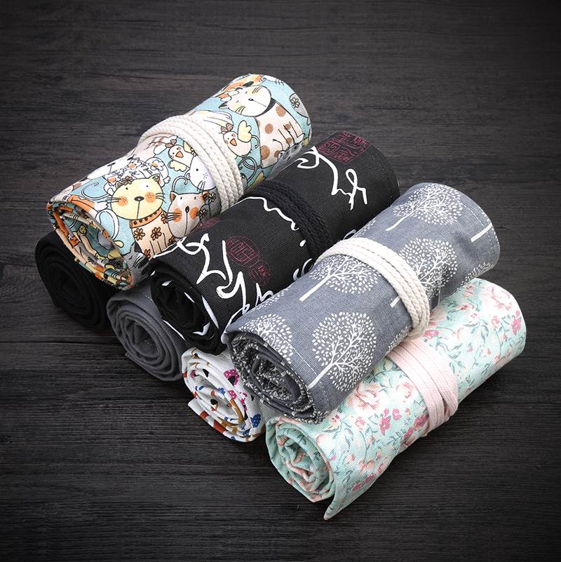 手工帆布笔帘36/48/72孔大容量卷笔袋 素M描彩色铅笔绘画文具