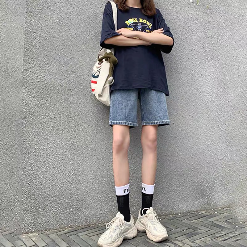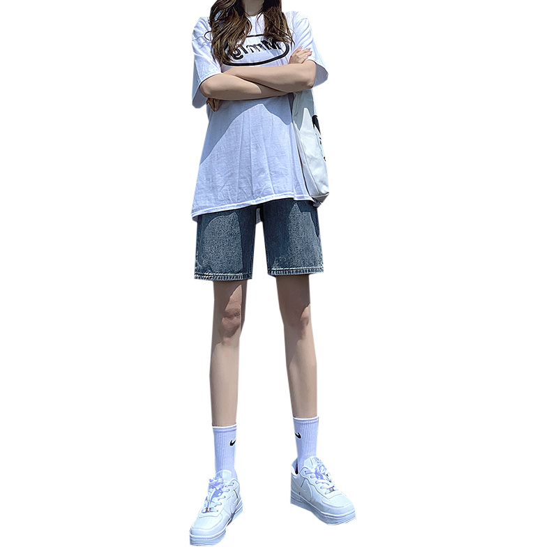 阔腿裤中裤宽松五分牛仔短裤女