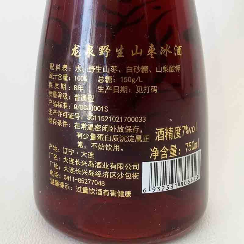 龙泉野生山枣冰酒酸枣蜜酒大连特产750ml6瓶装7度女士低度果酒甜