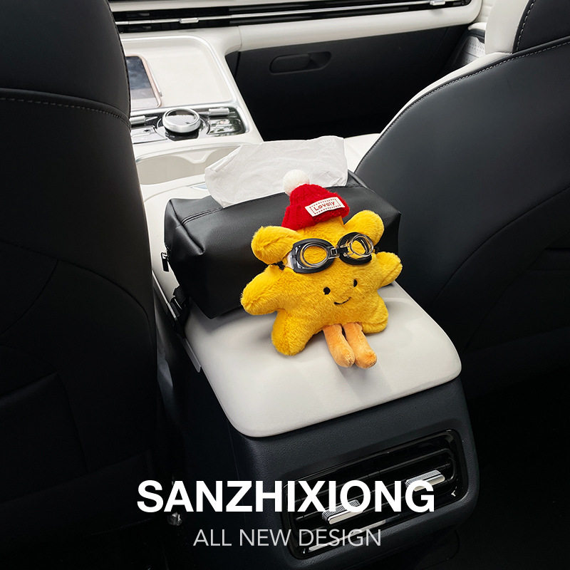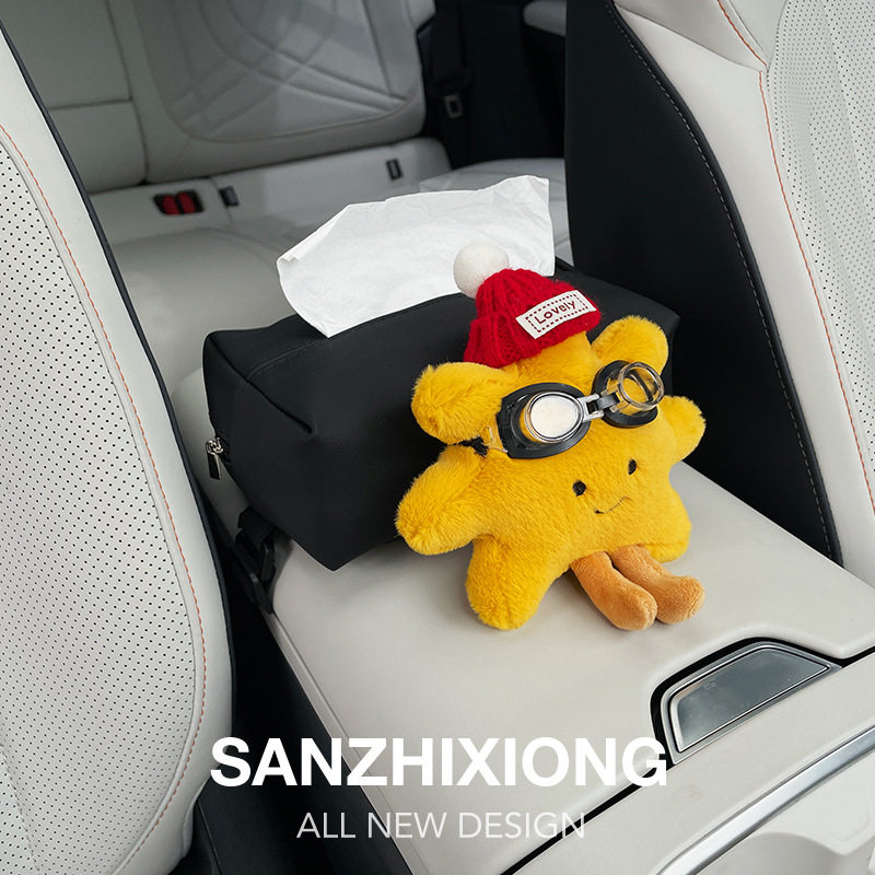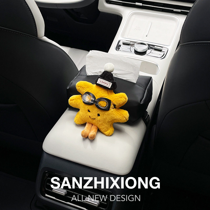 毛绒太阳花汽车纸巾包创意车载纸巾盒汽车扶手箱纸巾包车内抽纸盒