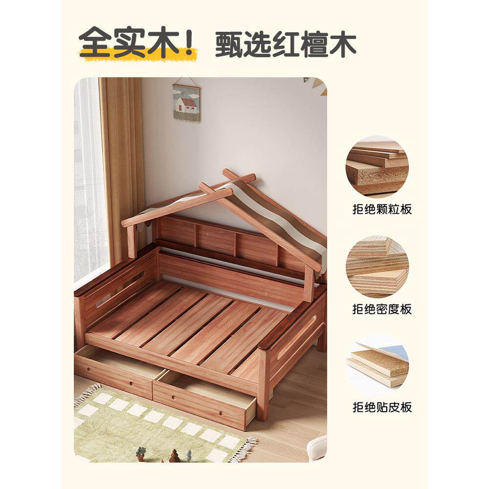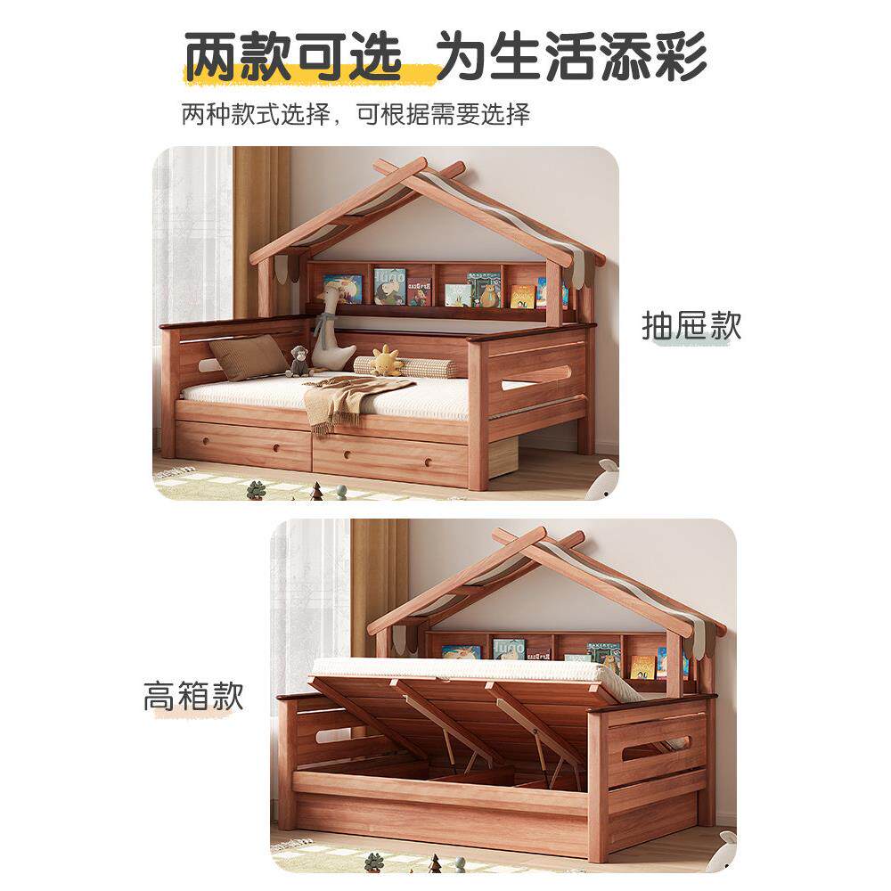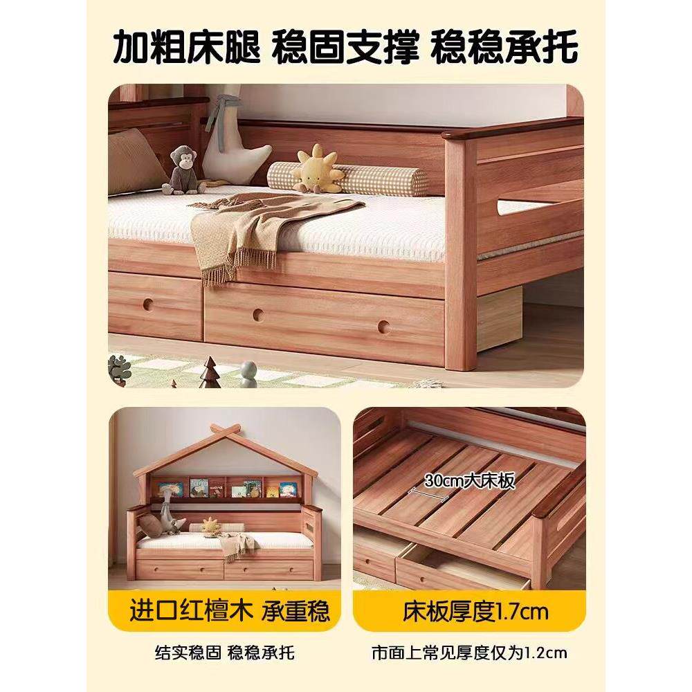 红檀木树屋床儿童单人床带护栏全实木双人床书架一体榻榻米组合床