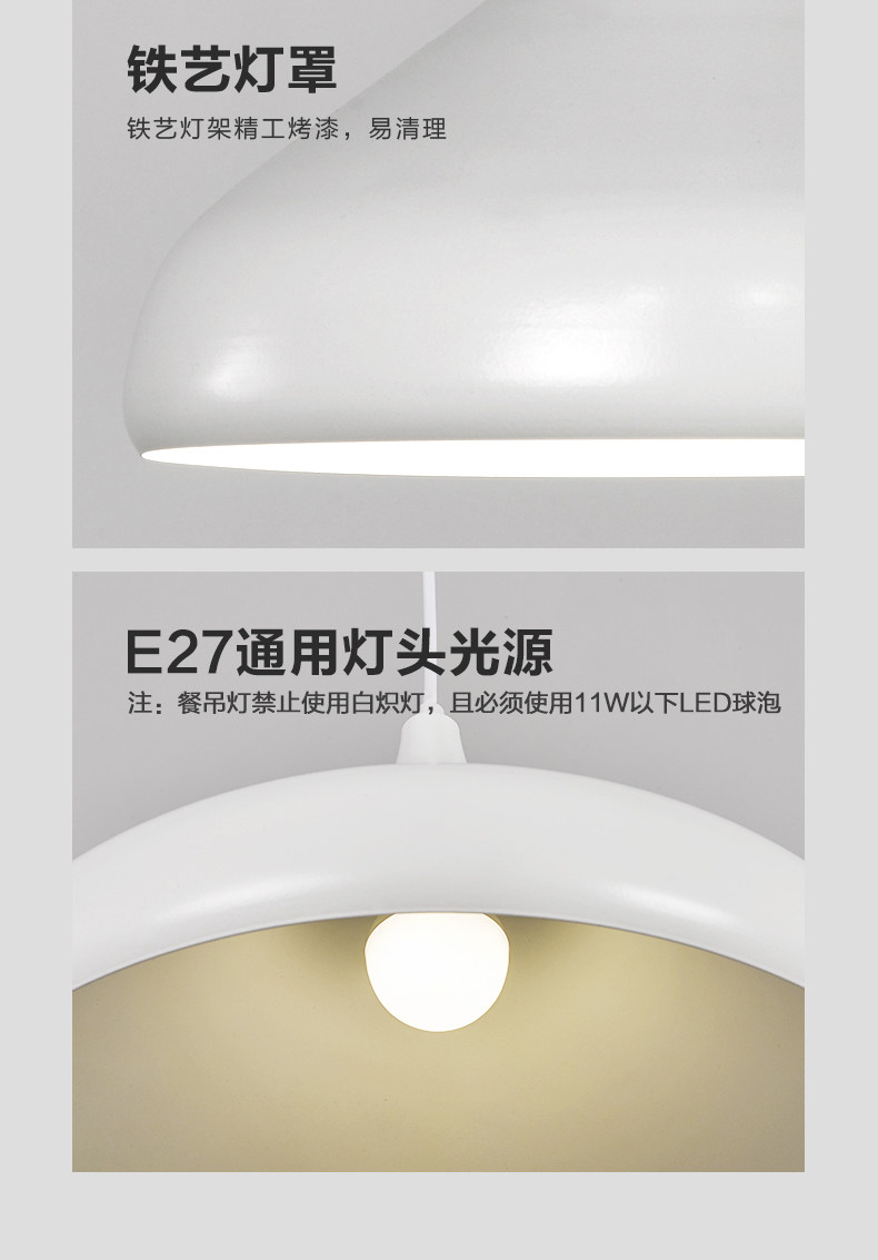 松下单头吊灯餐厅灯简约现代铁艺灯罩时尚餐吊灯E27口(不含光源)