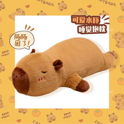 卡皮水豚吧啦长条睡觉抱枕男生款玩偶毛绒玩具公仔布娃娃生日礼物