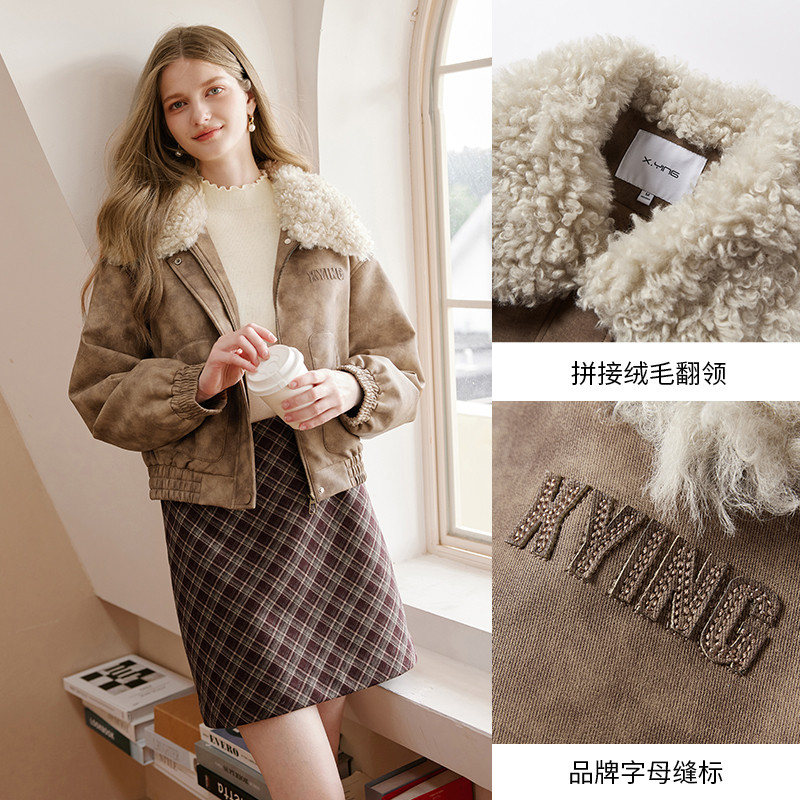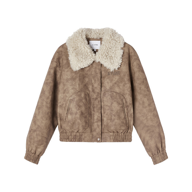 香影美拉德咖色皮衣短外套女毛领酷飒机车风夹克