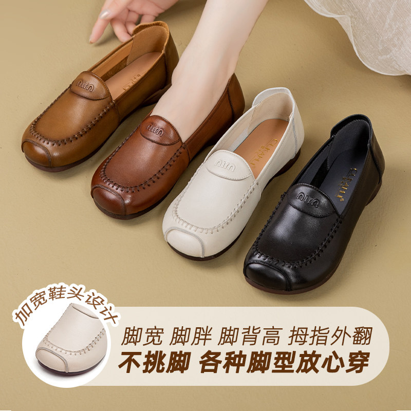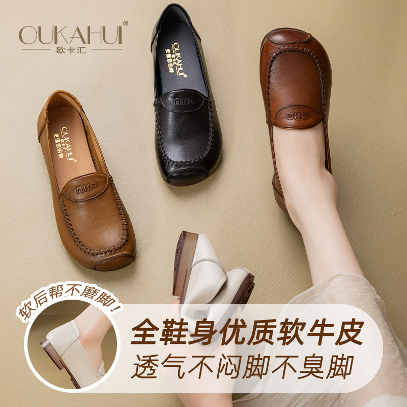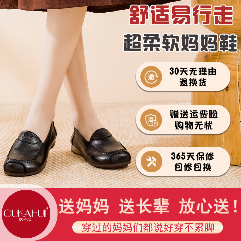 欧卡汇妈妈鞋中老年舒适单鞋工作鞋子真皮软底软面皮鞋一脚蹬女鞋