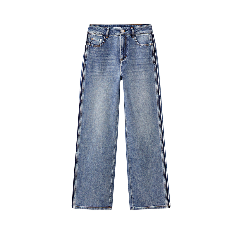 水云间蓝色高腰直筒牛仔裤女宽松阔腿长裤子极简通勤风2025冬新款