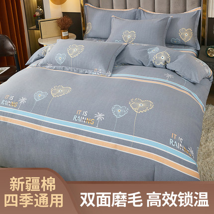 远梦全棉磨毛床笠四件套纯棉加厚保暖床单人三件套被罩床上用品4