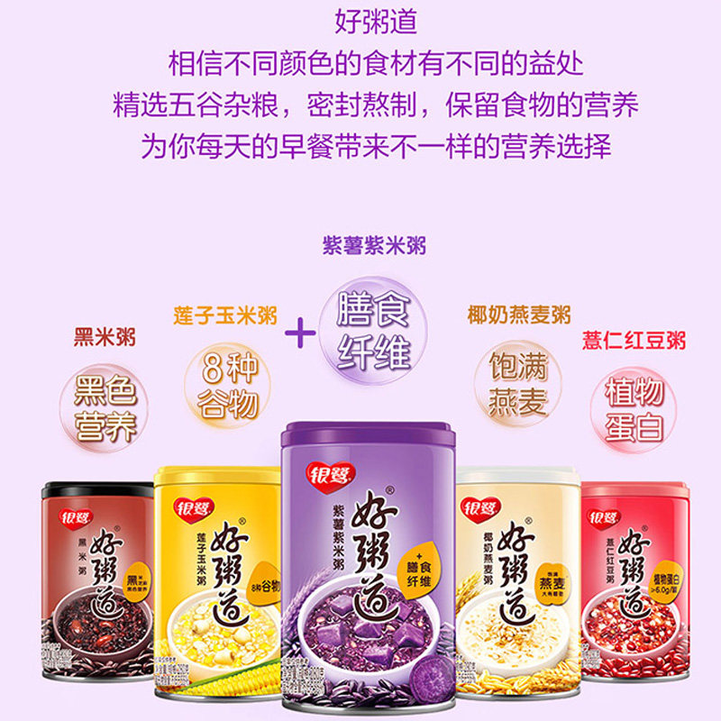 银鹭好粥道八宝粥黑米燕麦莲子玉米红豆桂圆整箱12罐方便即食粥