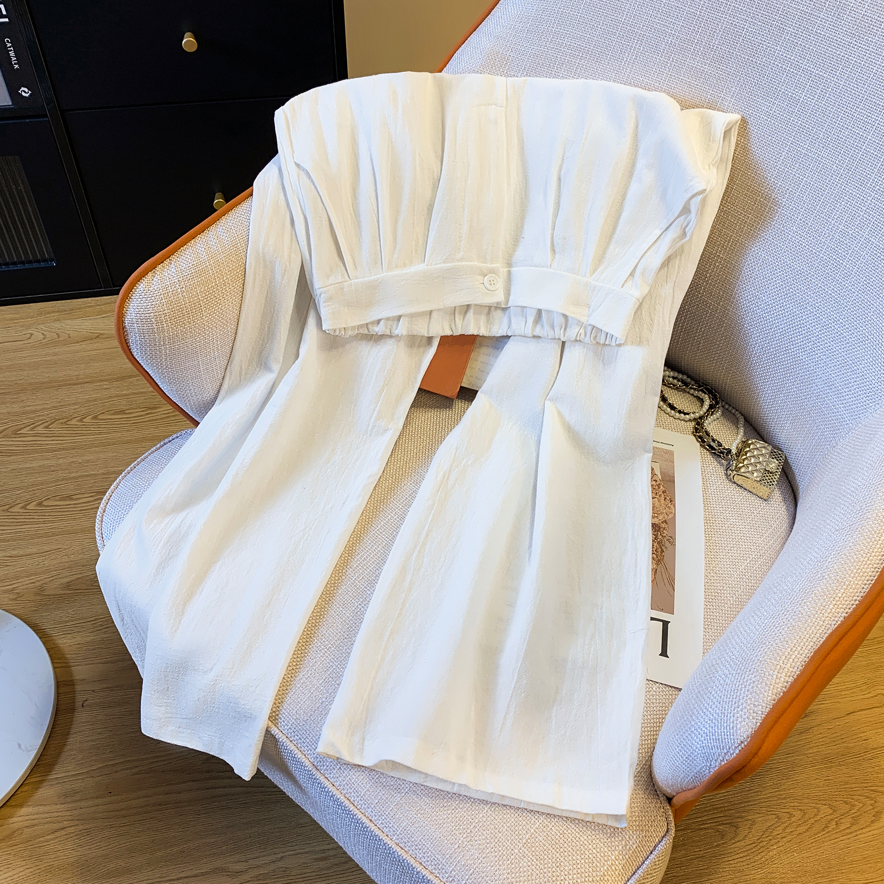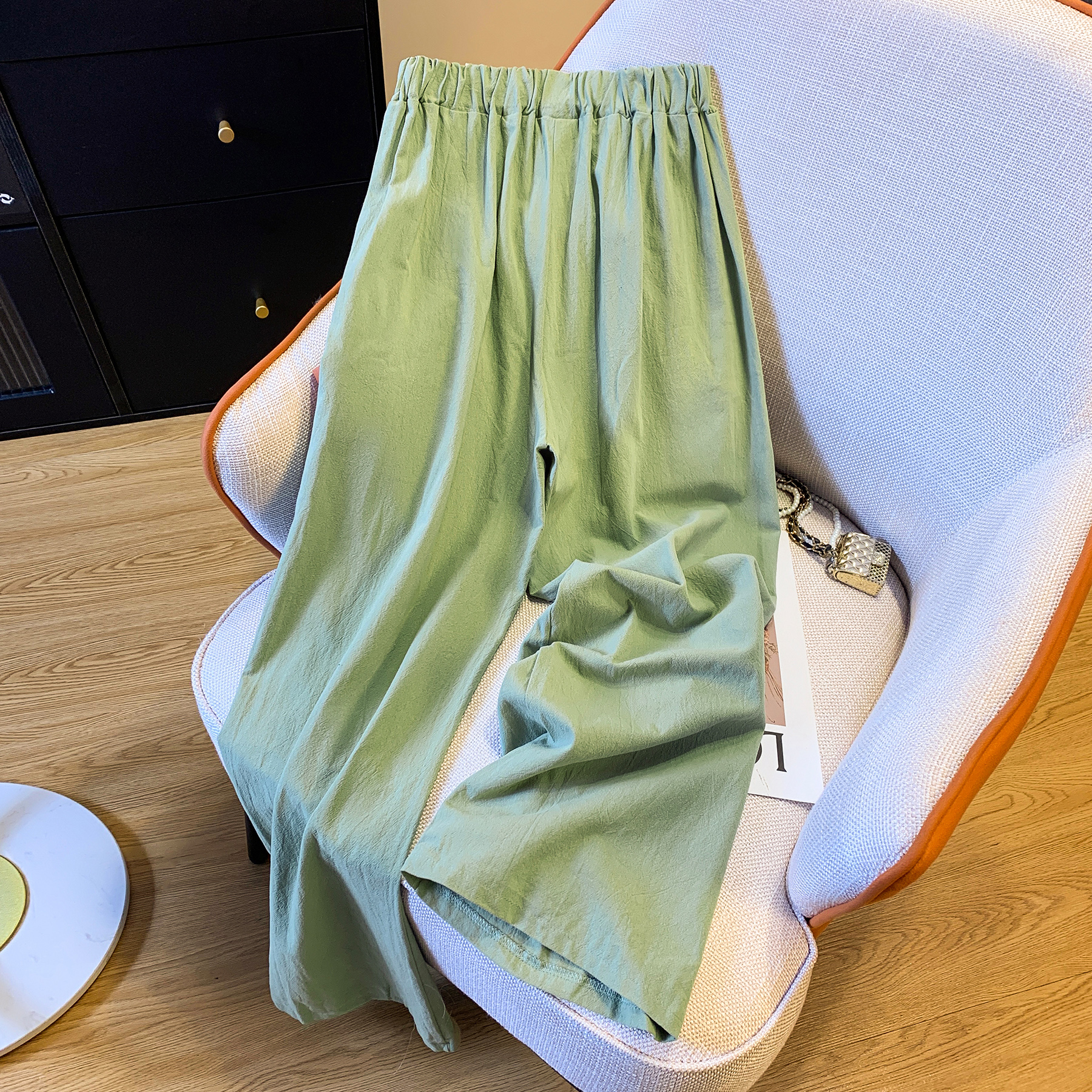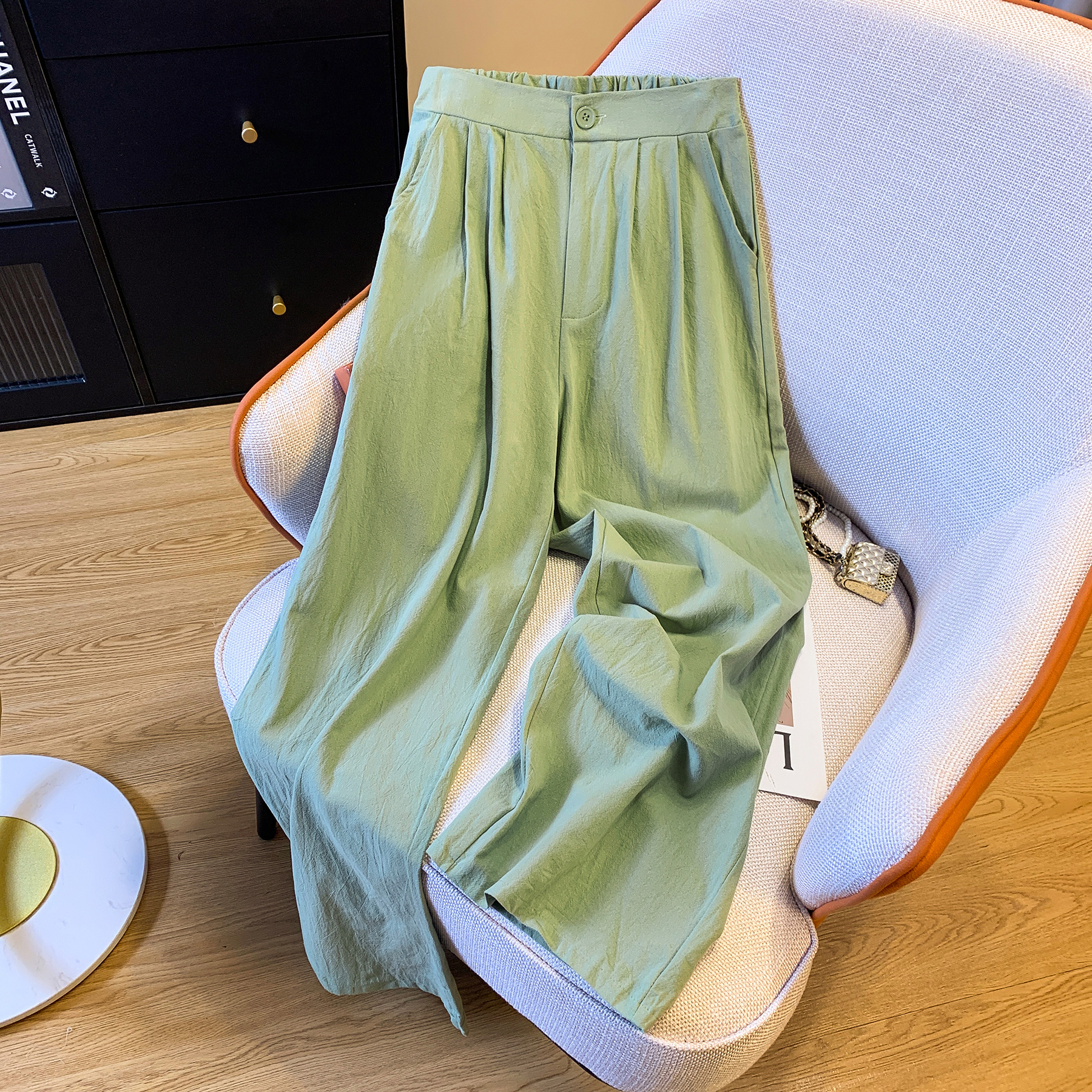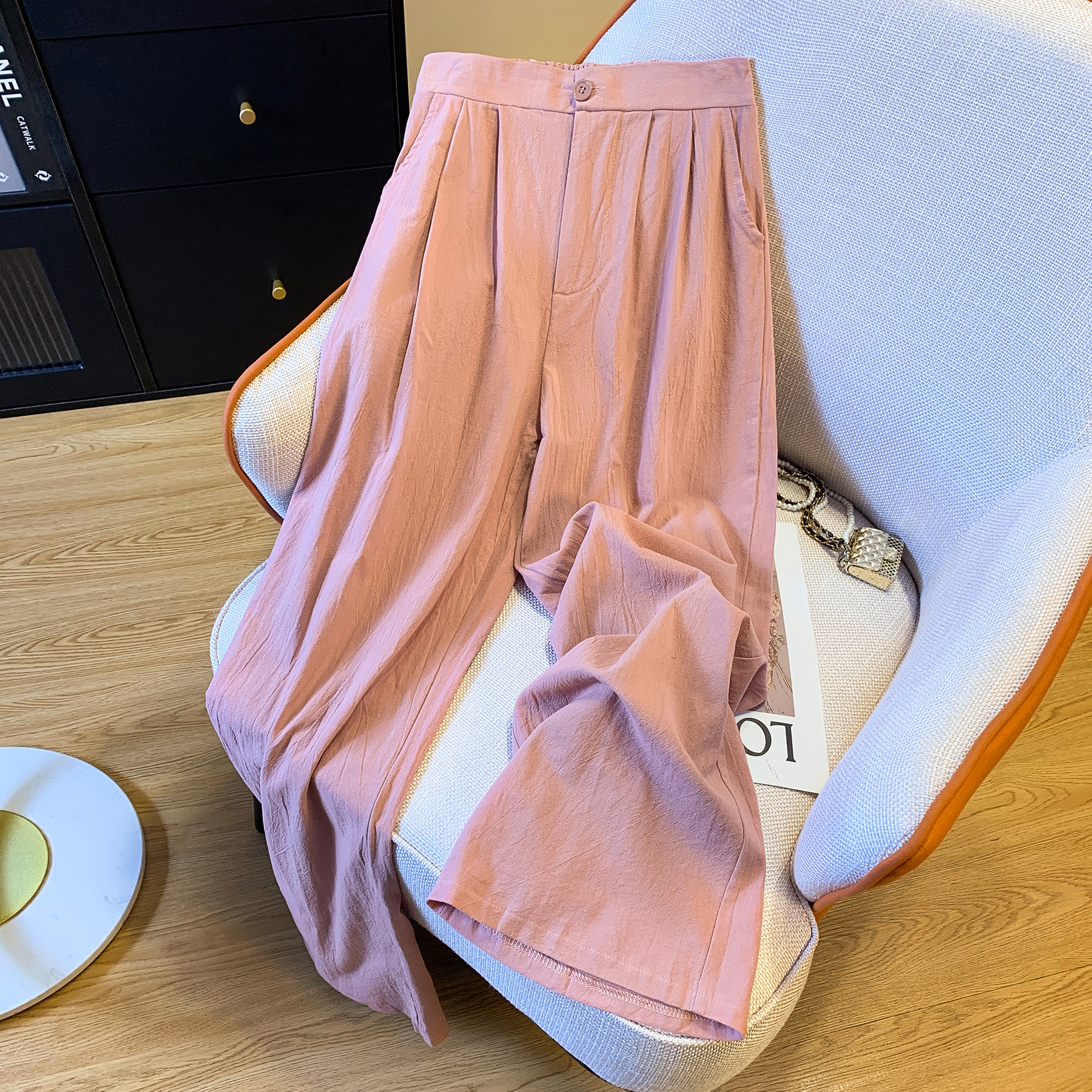 亚麻垂坠休闲阔腿裤女秋款直筒裤气质半松紧宽松拖地长裤子流行