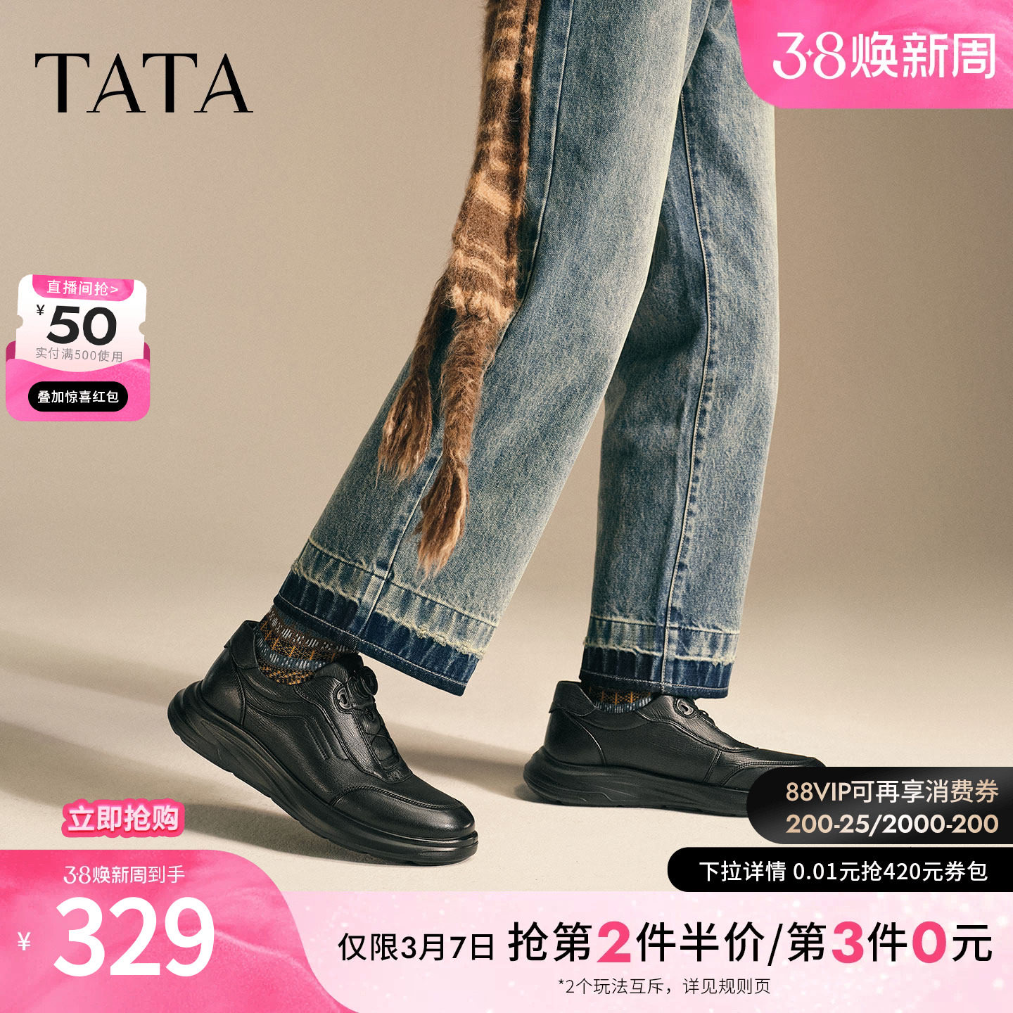 TATA他她男鞋2025冬皮鞋商场同款舒适百搭休闲鞋新款鞋子VMV01CM5