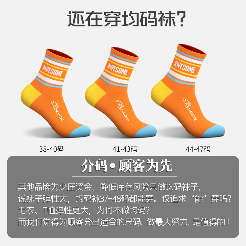 雷曼哲纯棉袜子男中筒袜女长袜秋季抗菌防臭吸汗运动袜短袜青少年
