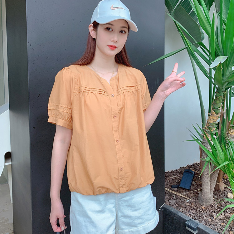 2025新款女装夏装短袖纯色小衫娃娃装套头T显瘦天丝棉衬衫潮上衣