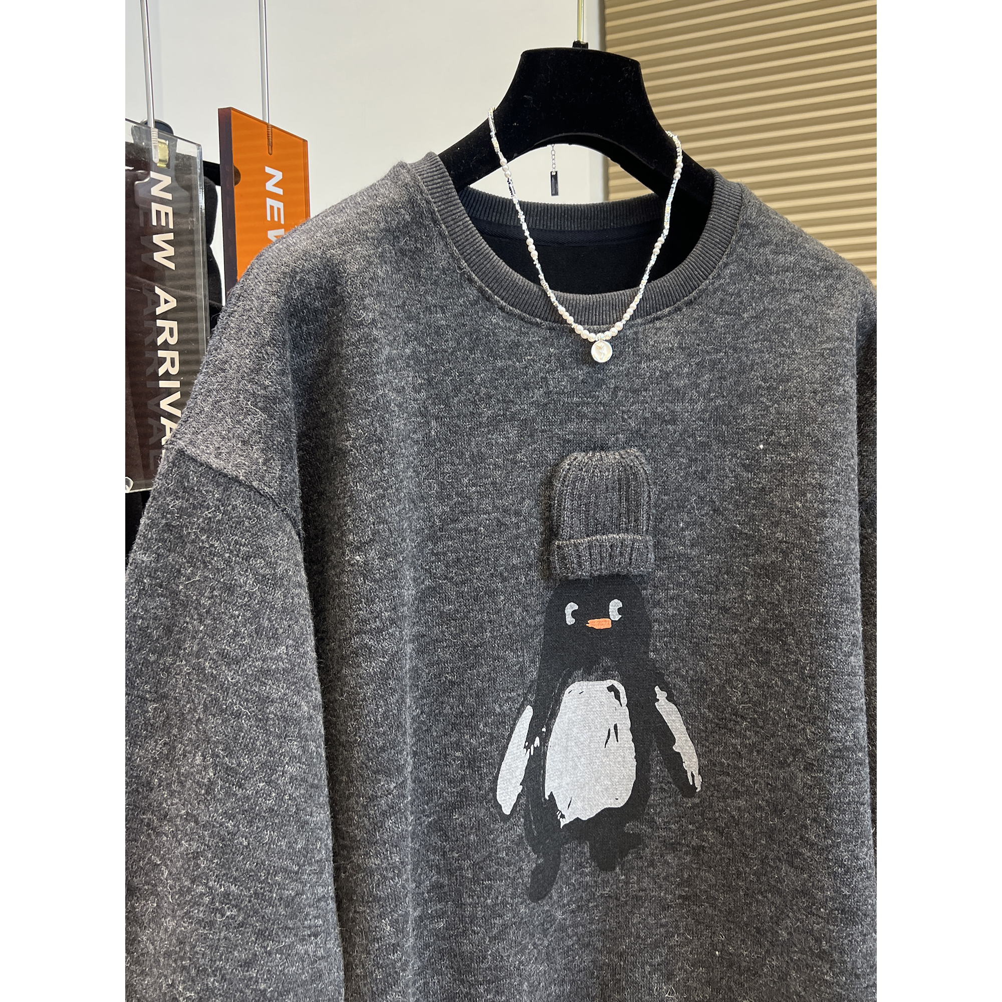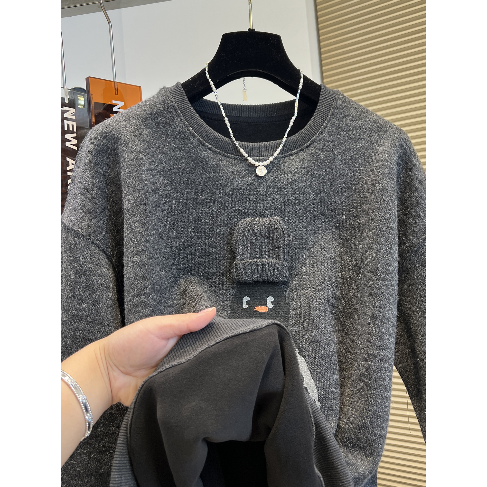 立体装饰帽子加绒加厚磨毛保暖卫衣女秋冬季新款宽松圆领长袖上衣