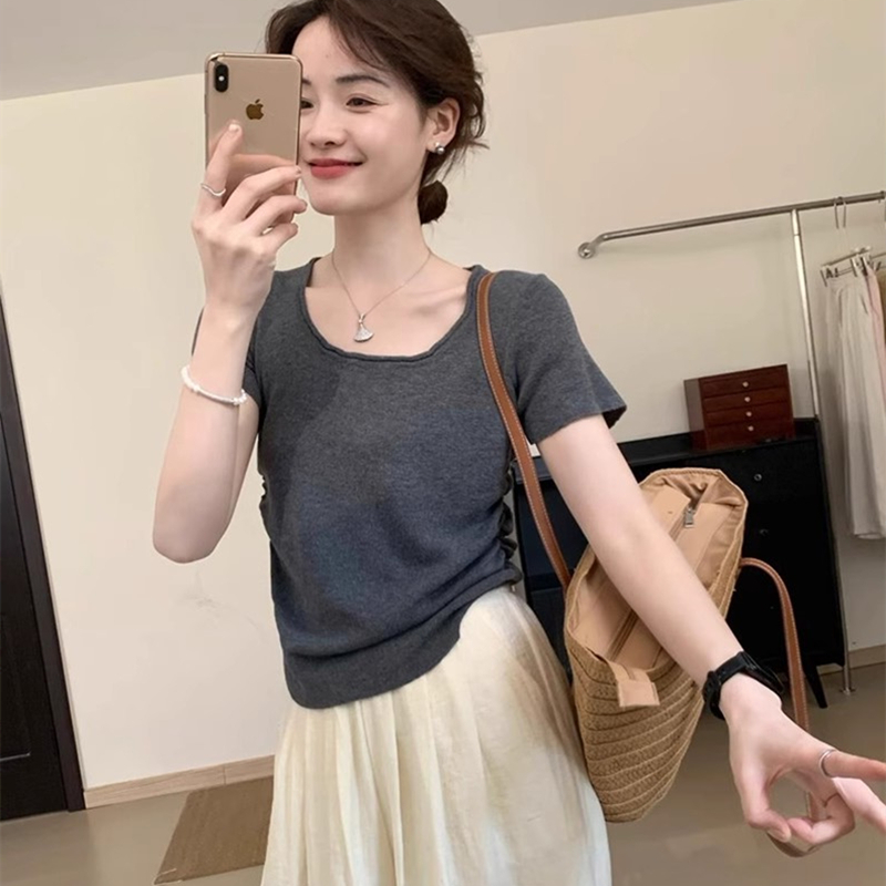 短袖T恤女夏季绝美小众修身上衣