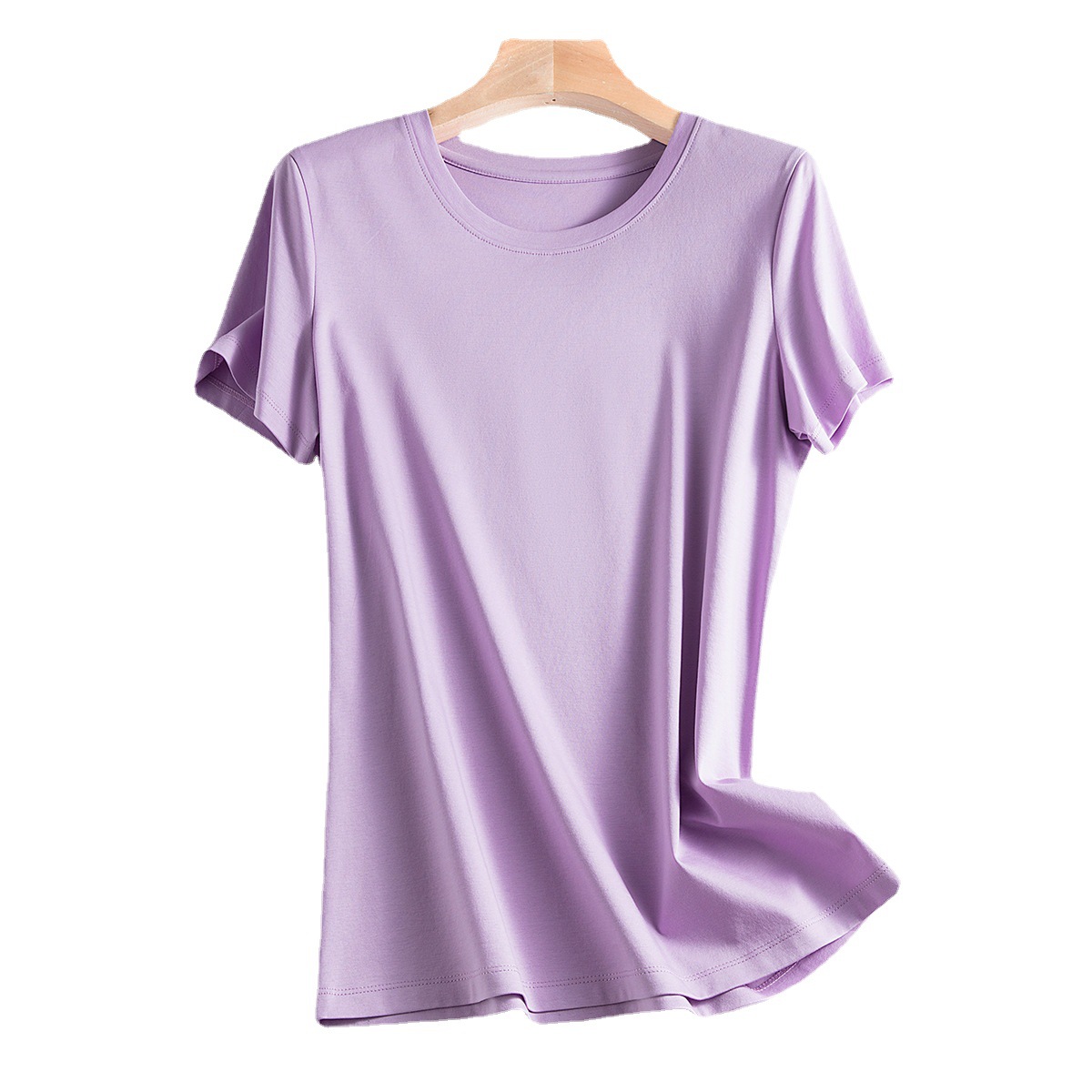 80支双面丝光棉短袖白色t恤女春季女装宽松圆领棉纯色半袖t恤