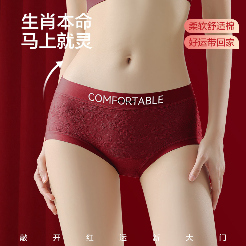 猫人本命年红色内裤女士纯棉中腰