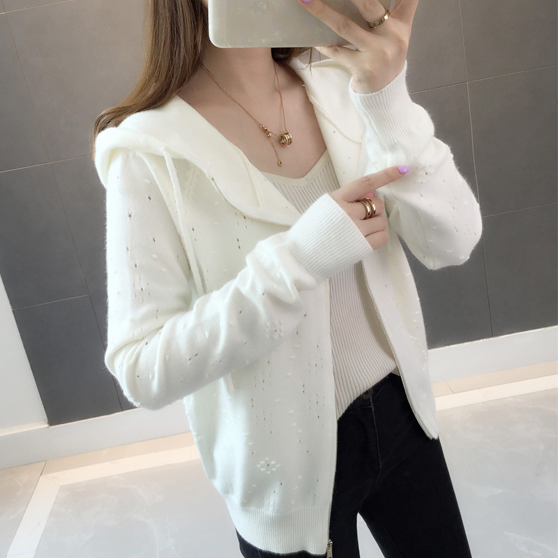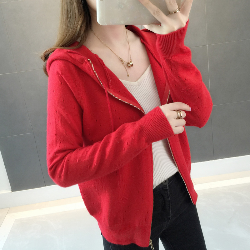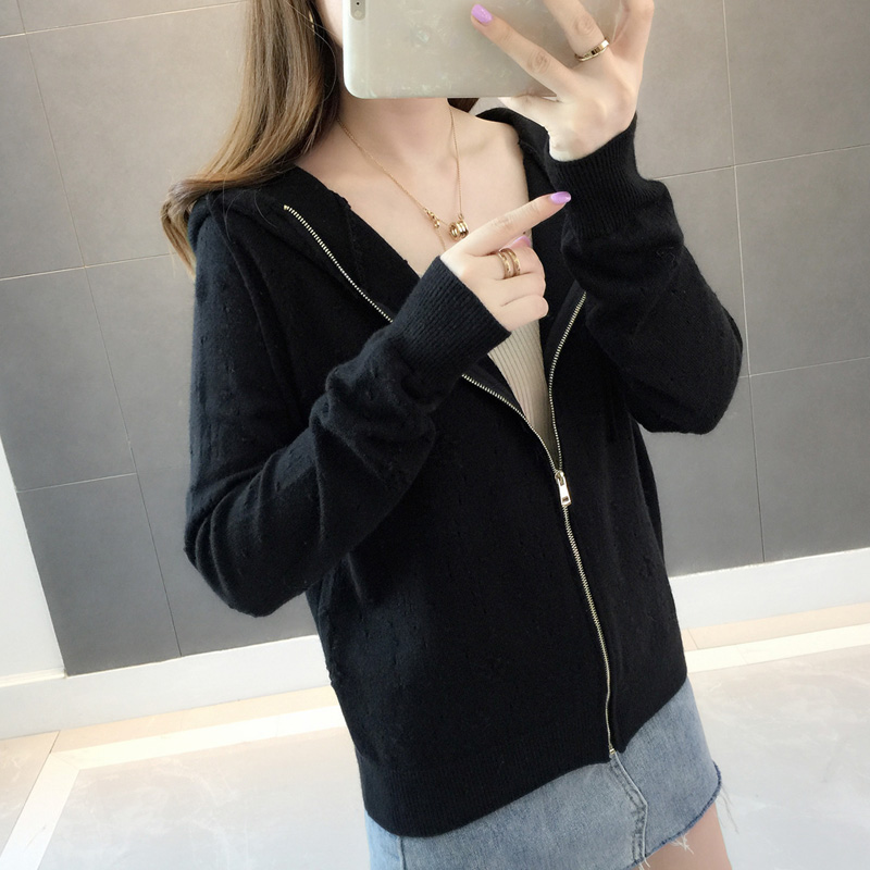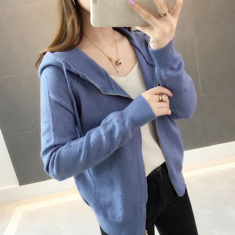 春秋装新款小清新连帽拉链针织衫开衫女韩版短款上衣宽松毛衣外套