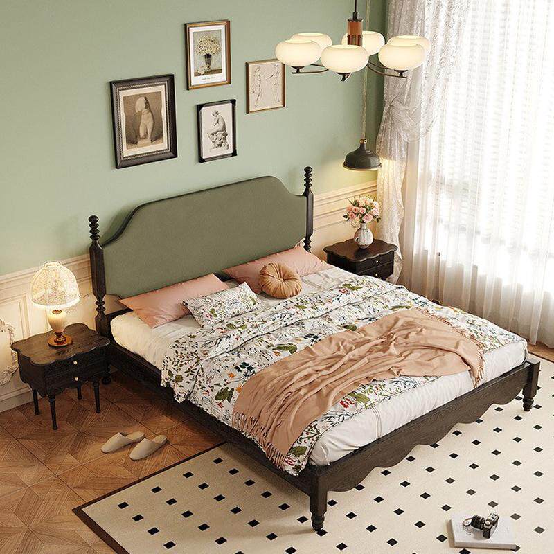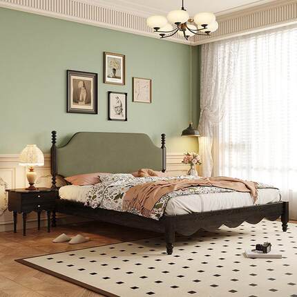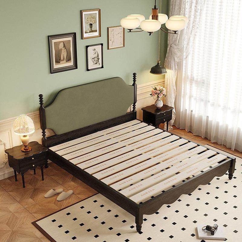 热销复古法式床头软包床卧室家具双人床黑色床中美式古风白蜡木实