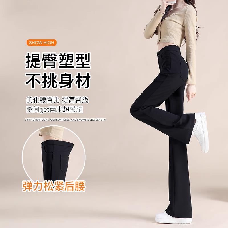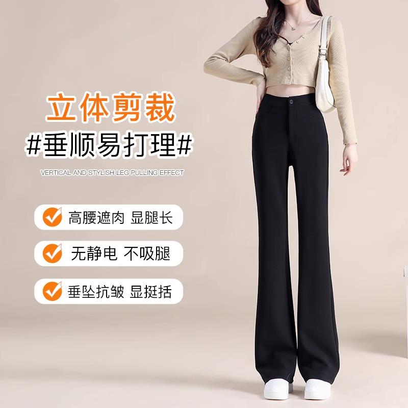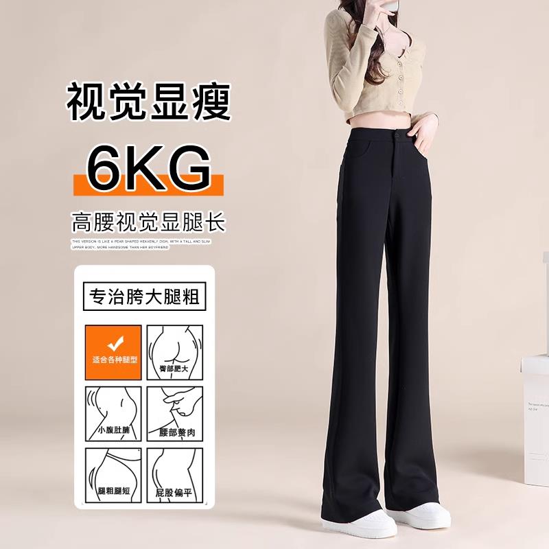 黑色不贴腿西装微喇裤女夏季薄款2025年高腰垂感显瘦休闲喇叭裤子